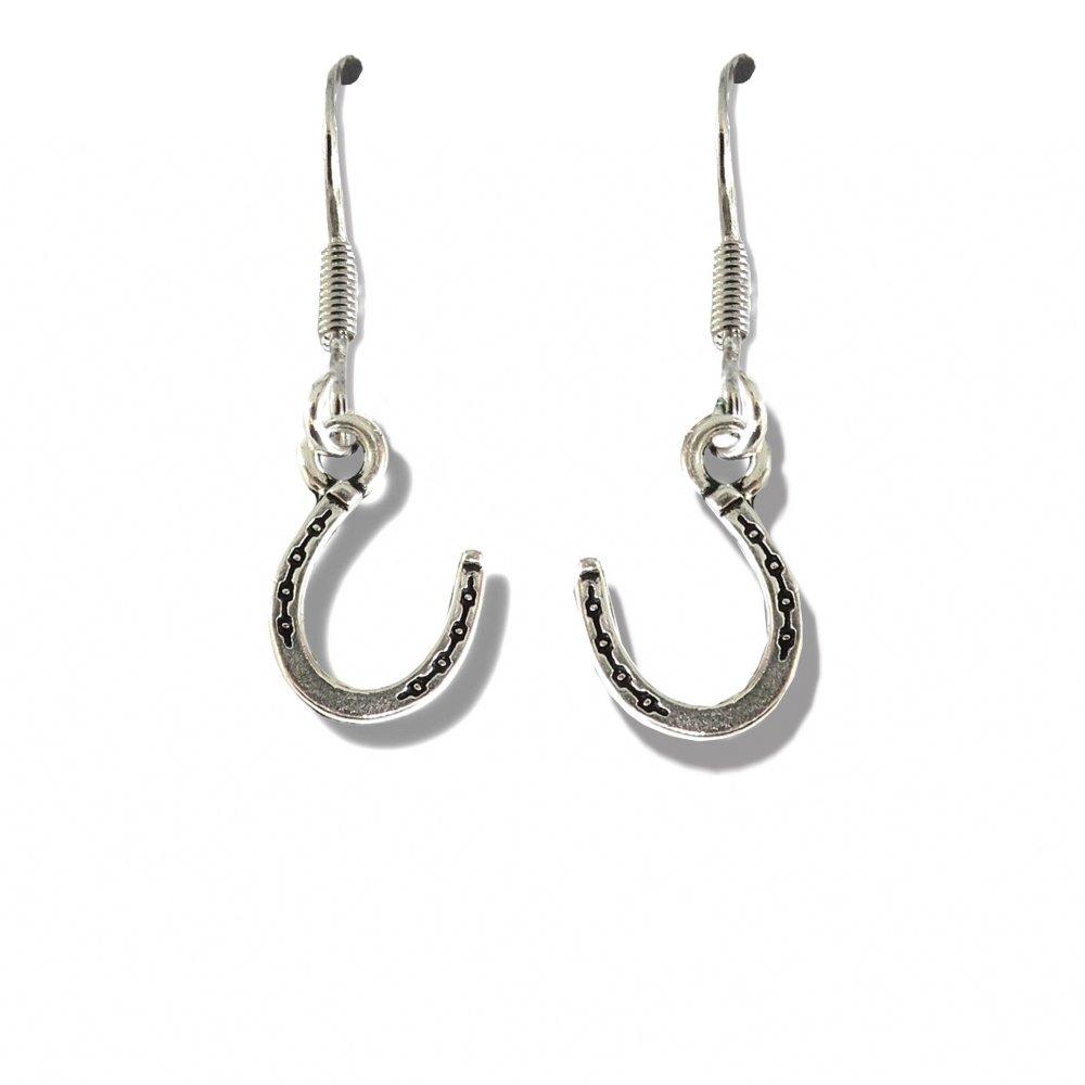 Sterling Silver Plated Drop Hooks, Nickle Free. Charm: Silver Plated Horseshoe 11.5mm. All jewellery comes in a sophisticated black box labelled with 'AYE DO GIFTS'. Letter box friendly gift - fits through a standard size letter box. Designed at our studio in Scotland, UK.