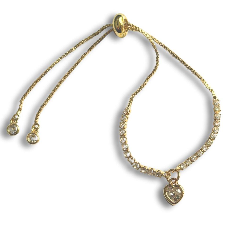 /Home/Accessories/Jewellery/Women's Jewellery/Bracelets & Bangles/Cubic Zirconia Heart Gold Diamante Slider Bracelet