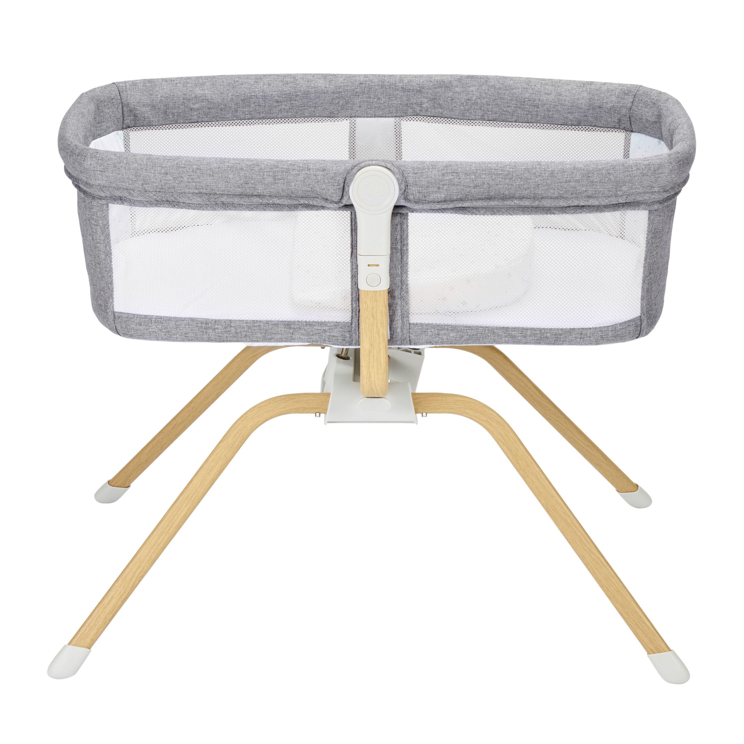 The Babymore Air Motion gliding crib is simple and well designed, its gentle, silent gliding motion is great for soothing your baby to sleep. The gliding motion can be operated by a parent, but also begins on its own when your baby stirs or rolls, settling them back to sleep or a nap. The crib can be locked so it doesn’t glide. This standalone crib is suitable for overnight sleeping, from birth up to 6 months or 9 kg. It is super lightweight, perfect if you want to be able to move it around your home, you can easily check on the baby through the double mesh sides, and can place the crib in different places for baby to look around. It looks super stylish and fits the aesthetics of a modern home. The crib can be dismantled or assembled in a minute, no tools needed, simply remove the slim legs and fold the crib. It all fits in a compact travel bag so you can take it with you for overnight stays as a holiday travel crib. The crib has a perfect height of 74cm, offering easy access to your baby, anywhere in your home. For co-sleeping, it does not require fastening to your bed, ensure it's never accidentally left in an unsafe position. A reflux wedge is included with the crib, which elevates baby safely to help reduce reflux symptoms.