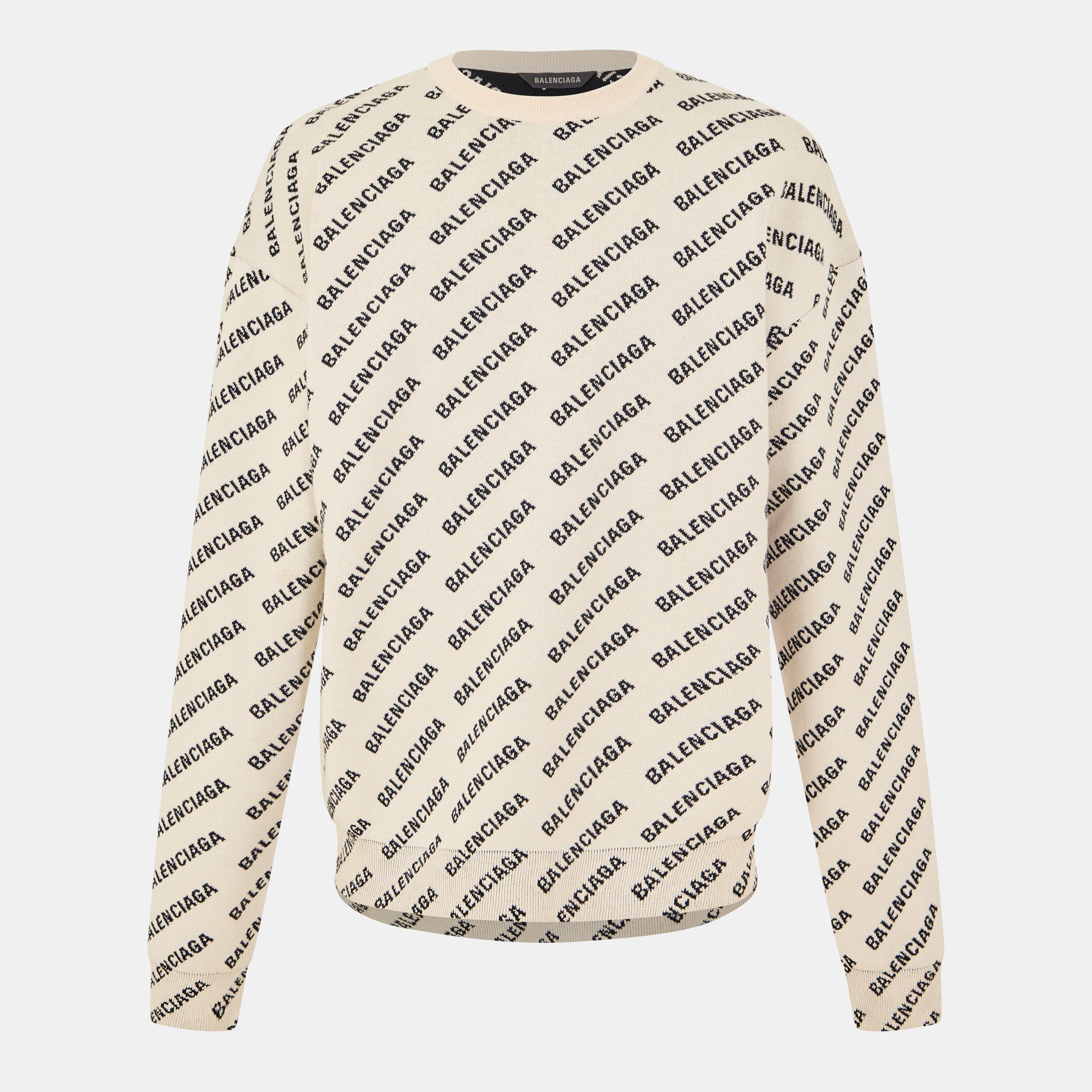 Elevate your wardrobe with the Balenciaga Mini All-over Logo Sweater, a bold statement piece crafted for effortless luxury. Featuring a classic crewneck and long sleeves with relaxed dropped shoulders, this sweater showcases the iconic Balenciaga logo elegantly cascading diagonally from sleeve to front. Ideal for turning heads at weekend brunch or casual city strolls.