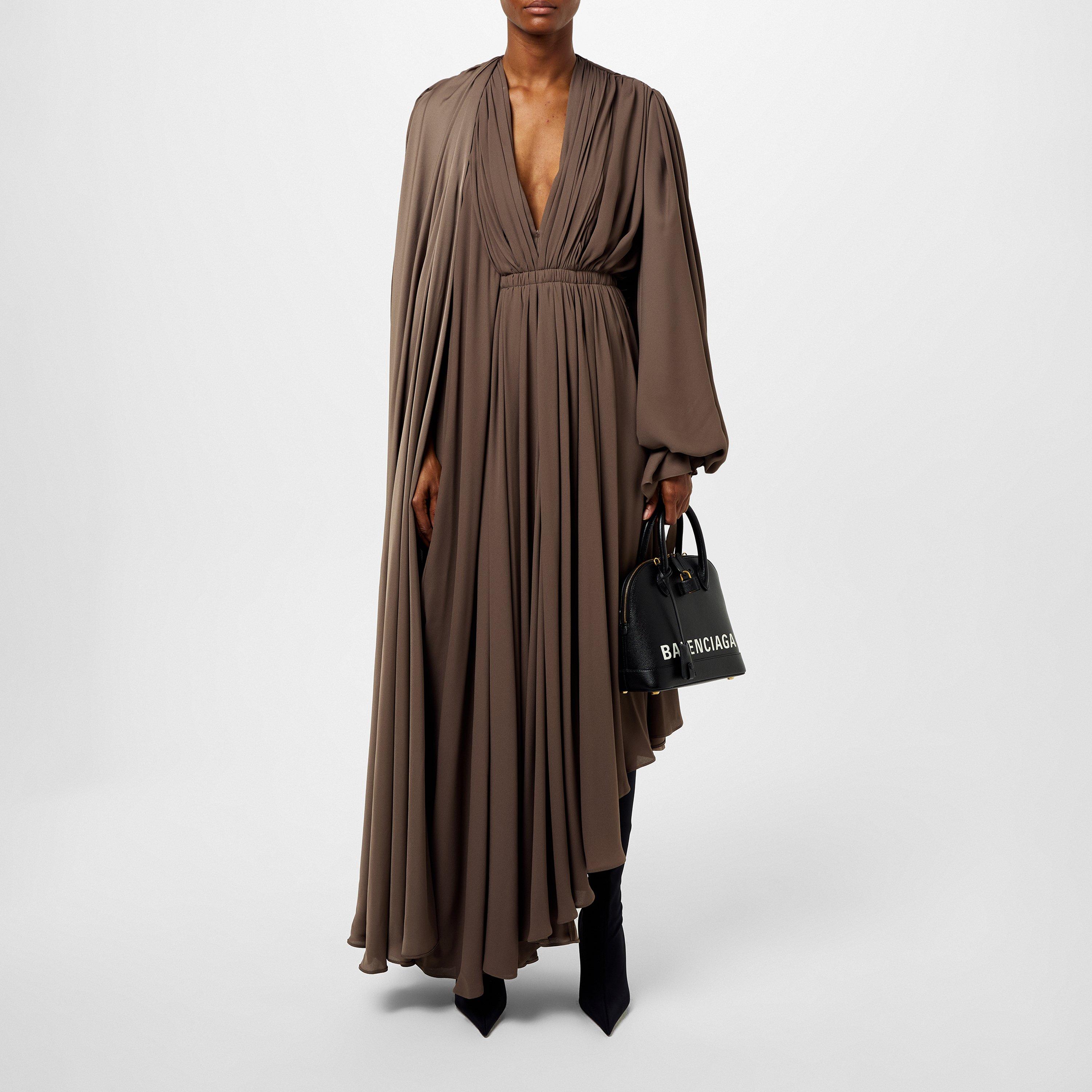 Revitalise your formal wardrobe with the V Neck Draped Maxi Dress from Balenciaga. Beautifully crafted in delicate folds of crepe fabric, this floor-length maxi dress is perfectly suited for a night at the opera, elegant charity galas or sophisticated black tie events.