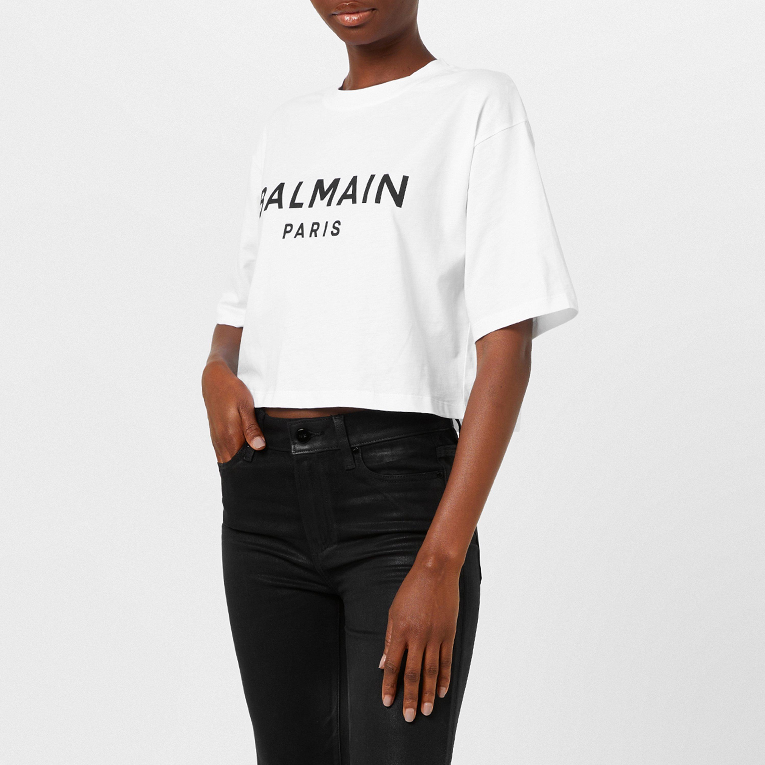 Upgrade your essentials with this Cropped Logo T Shirt from Balmain. Crafted with a high quality cotton fabric, this cropped t shirt is cut in a regular fit and features a ribbed crew neckline, short sleeves, a straight hemline and elasticated trims for comfort. The look is finished with the Balmain logo emblazoned onto the front in a flocked design for some instant brand recognition. Hand wash only.