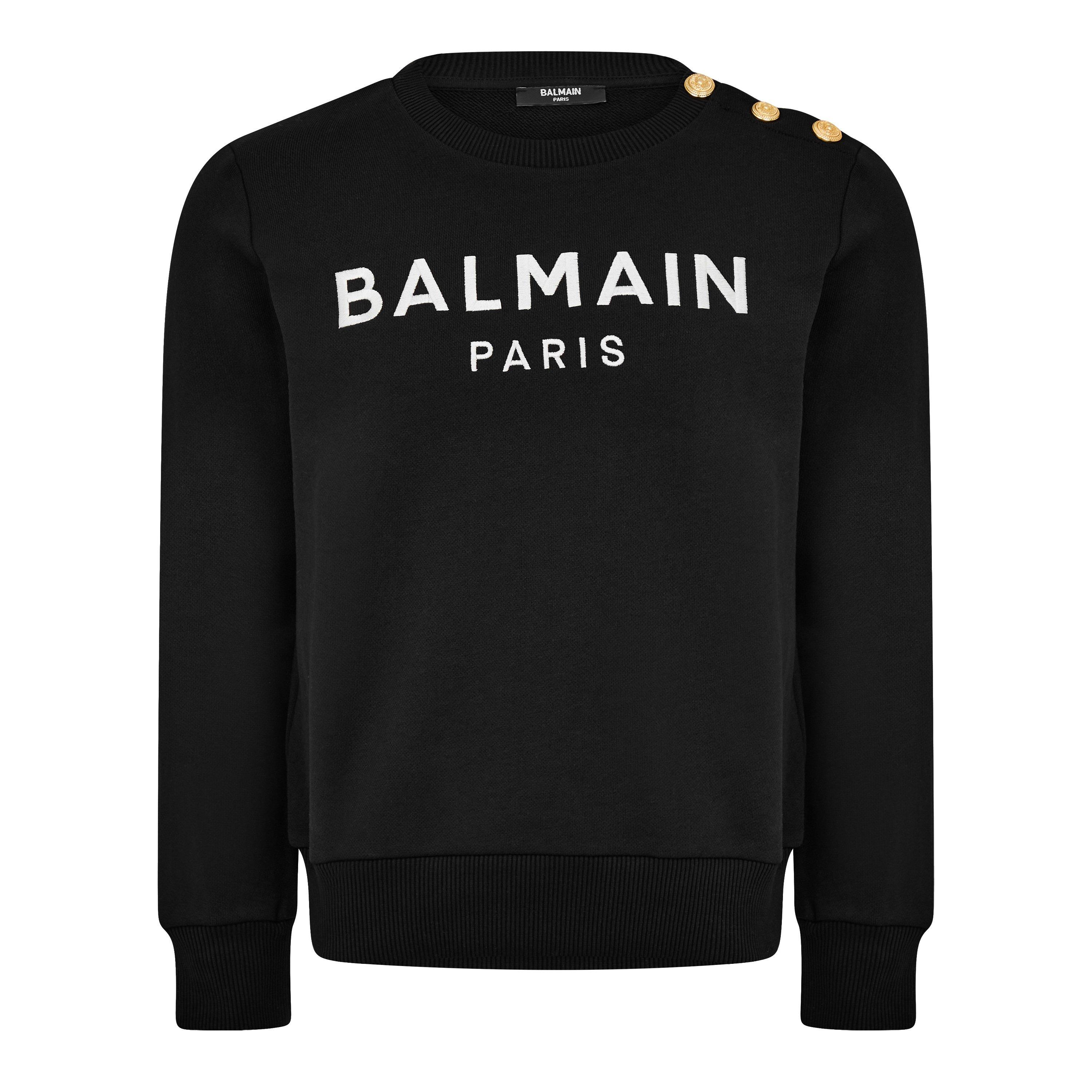 The solid base colouring creates an excellent canvas to style this kid's jumper into any weekend or after-school ensemble, making it a versatile addition to their wardrobe. Brand recognition is assured by the large embroidered Paris logo on the chest, while three decorative gold-toned buttons on the left shoulder create eye-catching detailing that will set them apart from the rest. Whether a casual day out with friends or visiting relatives with you, Balmain's Embroidered Paris Sweatshirt will elevate your youngster's look, marking them as a future trendsetter to be envied!