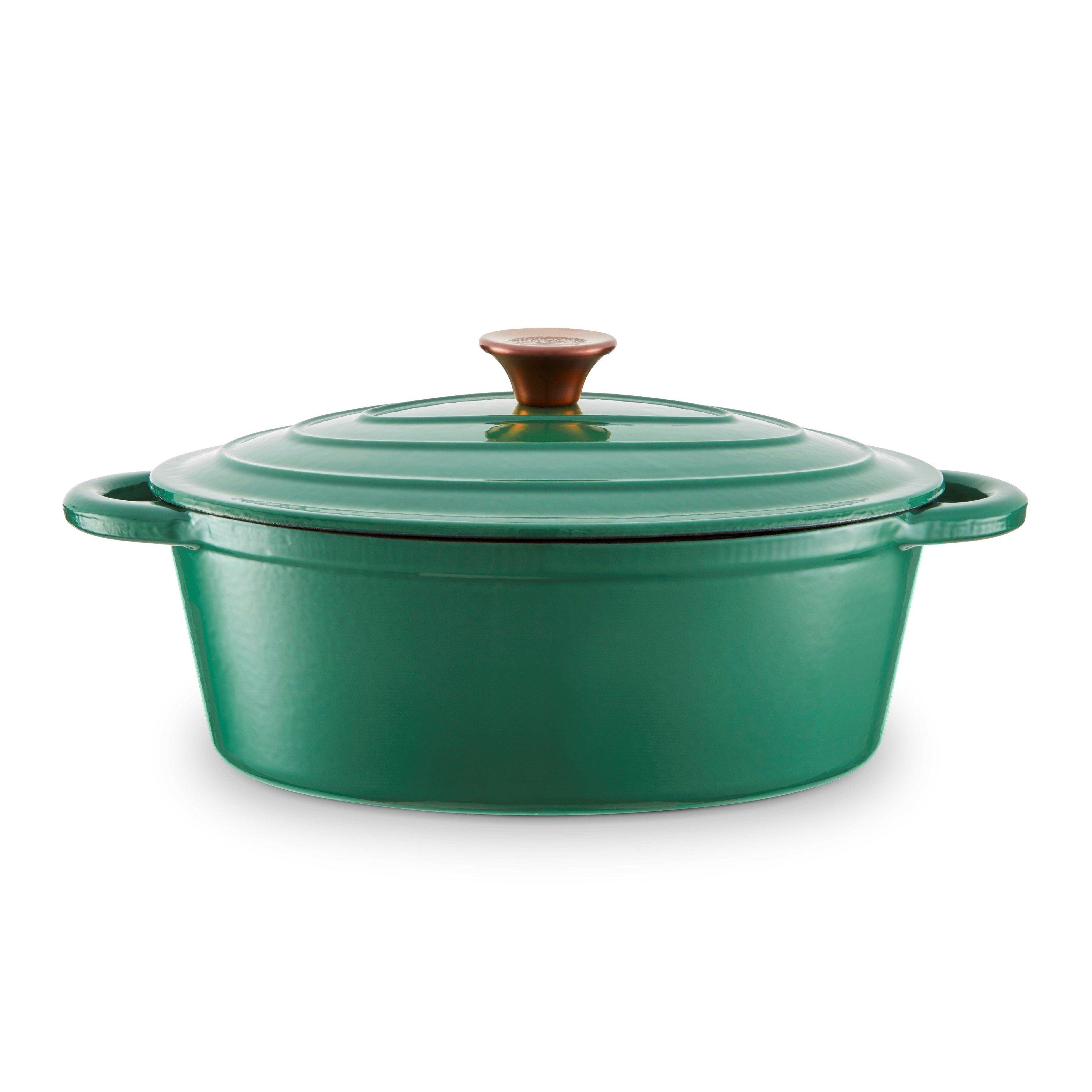This Barbary Oak 29cm Oval Casserole Dish is a reliable cooking companion that any avid cook needs in their kitchen. Designed in four colourways, Limoges Blue, Bordeaux Red, Camembert Cream and Verdigris Green, the pan features quality cast iron that is durable and built to last. Cast iron retains heat, meaning it keeps food warmer for longer making it perfect for those who love to make delicious casseroles for all the family. The enamel interior prevents food from sticking, is easy to clean, and will not absorb odours or flavours. Versatile in design, the casserole dish is suitable for all hob types including induction. A domed lid is included, which helps lock in and retain all the moisture to ensure your food is tender with an enhanced flavour. Crafted with 2 handles, they provide an easier grip for carrying food from the oven to the table.