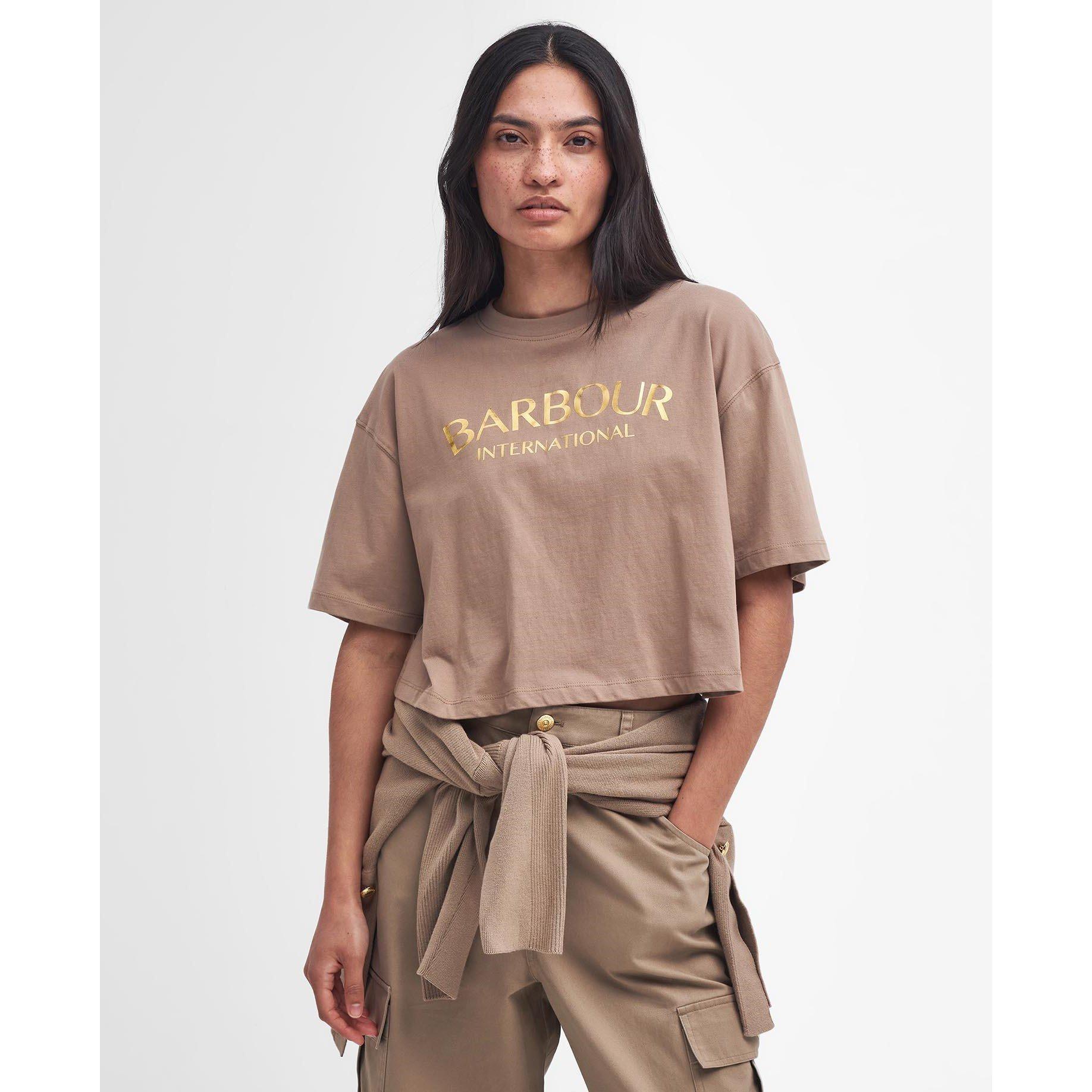 If you're looking to expand on your selection of wardrobe staples, the B.Intl Milla Cropped T-Shirt is the perfect way to complete your collection. This relaxed silhouette features a foiled Barbour International logo to the chest, for a stylish and modern take on a classic T-shirt. The cotton-blend garment features a crew neck and short sleeves, so it’s easy to style with your favourite laid-back pieces, from leggings to jeans.