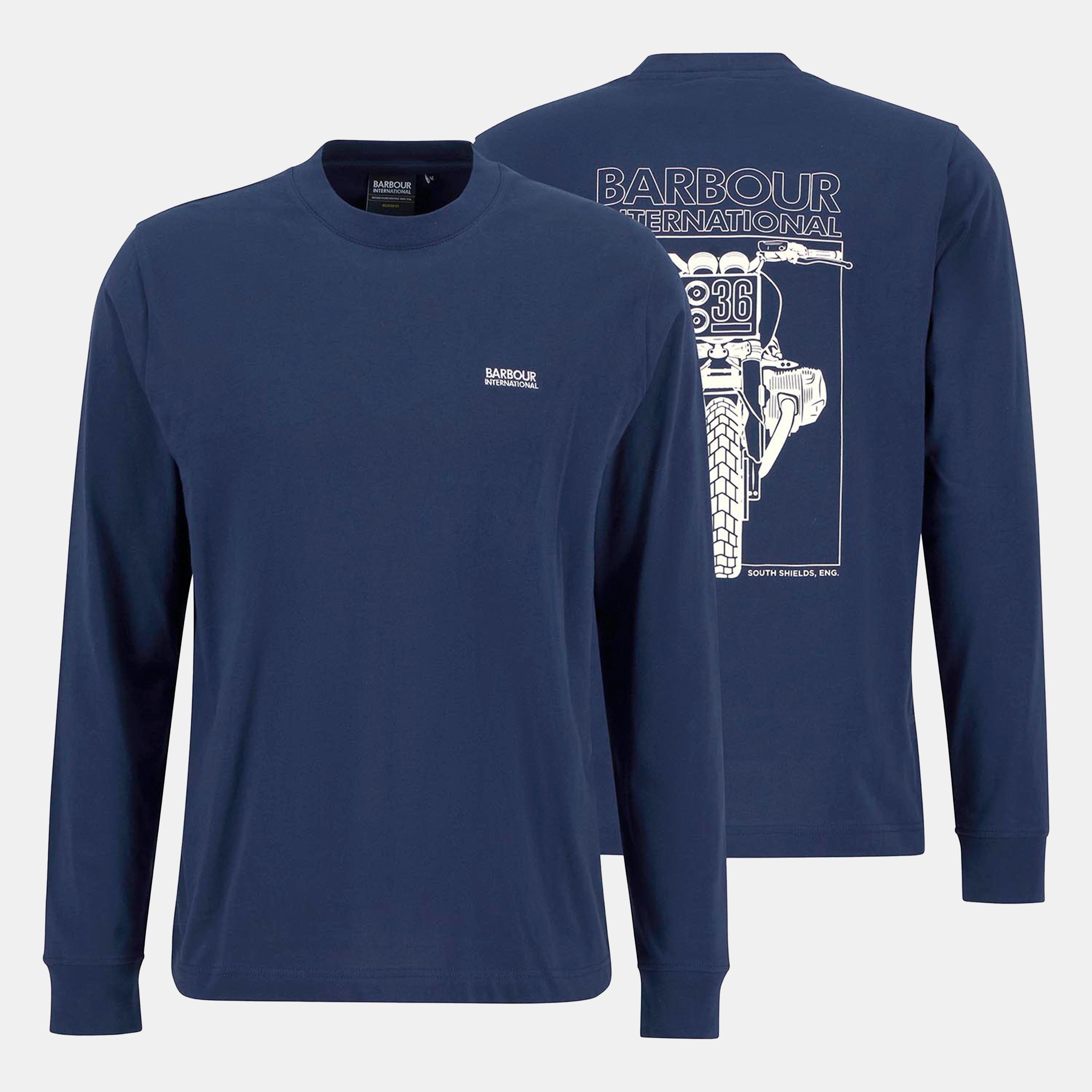 Effortlessly combining comfort and style, the Barbour International Louis Long Sleeve T-Shirt is a wardrobe essential for laid-back days. Featuring an eye-catching graphic on the back, this T-shirt references Barbour's rich motorcycling heritage. Perfect for relaxed weekends, casual outings, or layering under a jacket during transitional seasons.