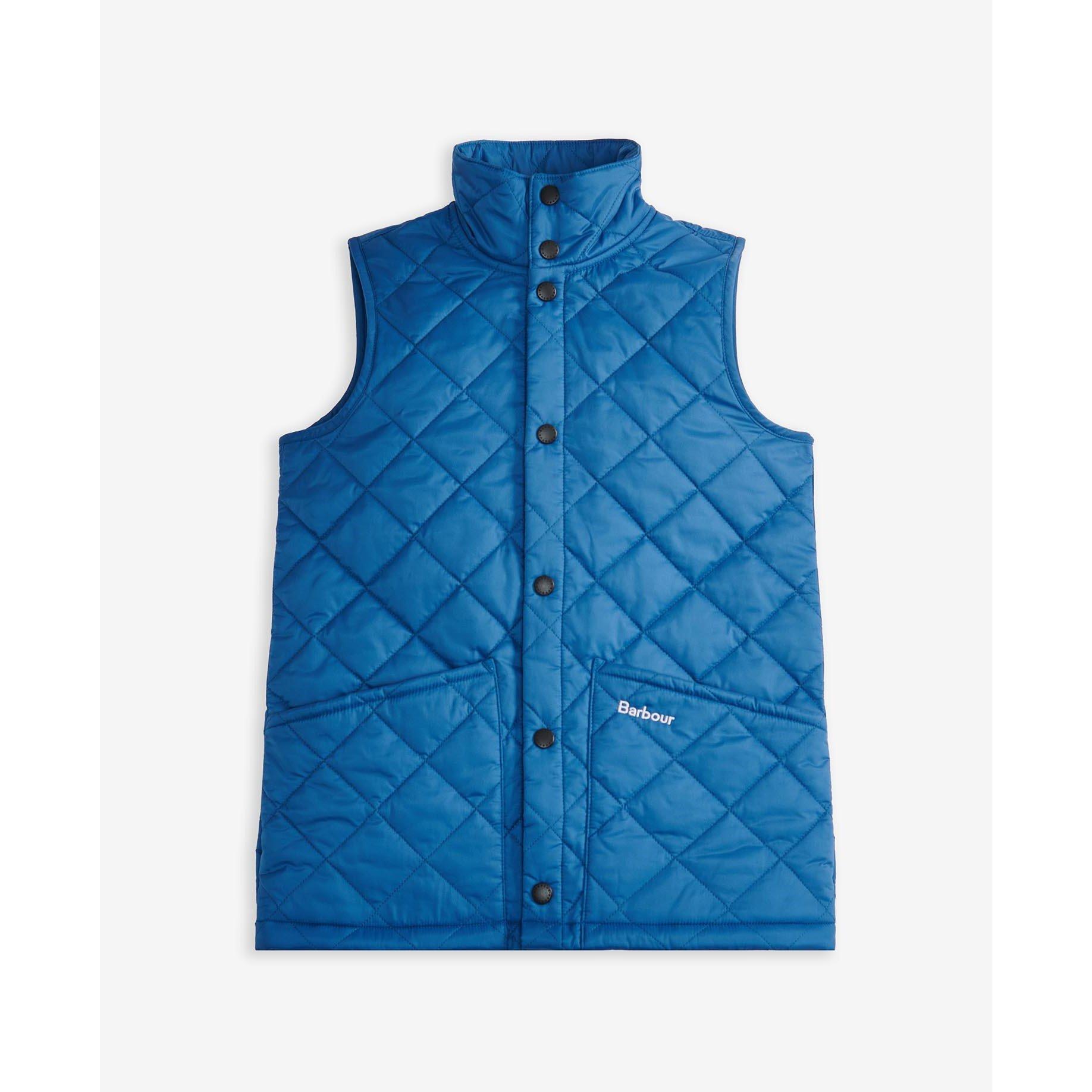 Barbour Kids' Liddesdale Quilted Gilet features a classic box quilted design with practical stud front fastenings. This sleeveless style includes a protective stand collar and lower patch pockets for essential storage.