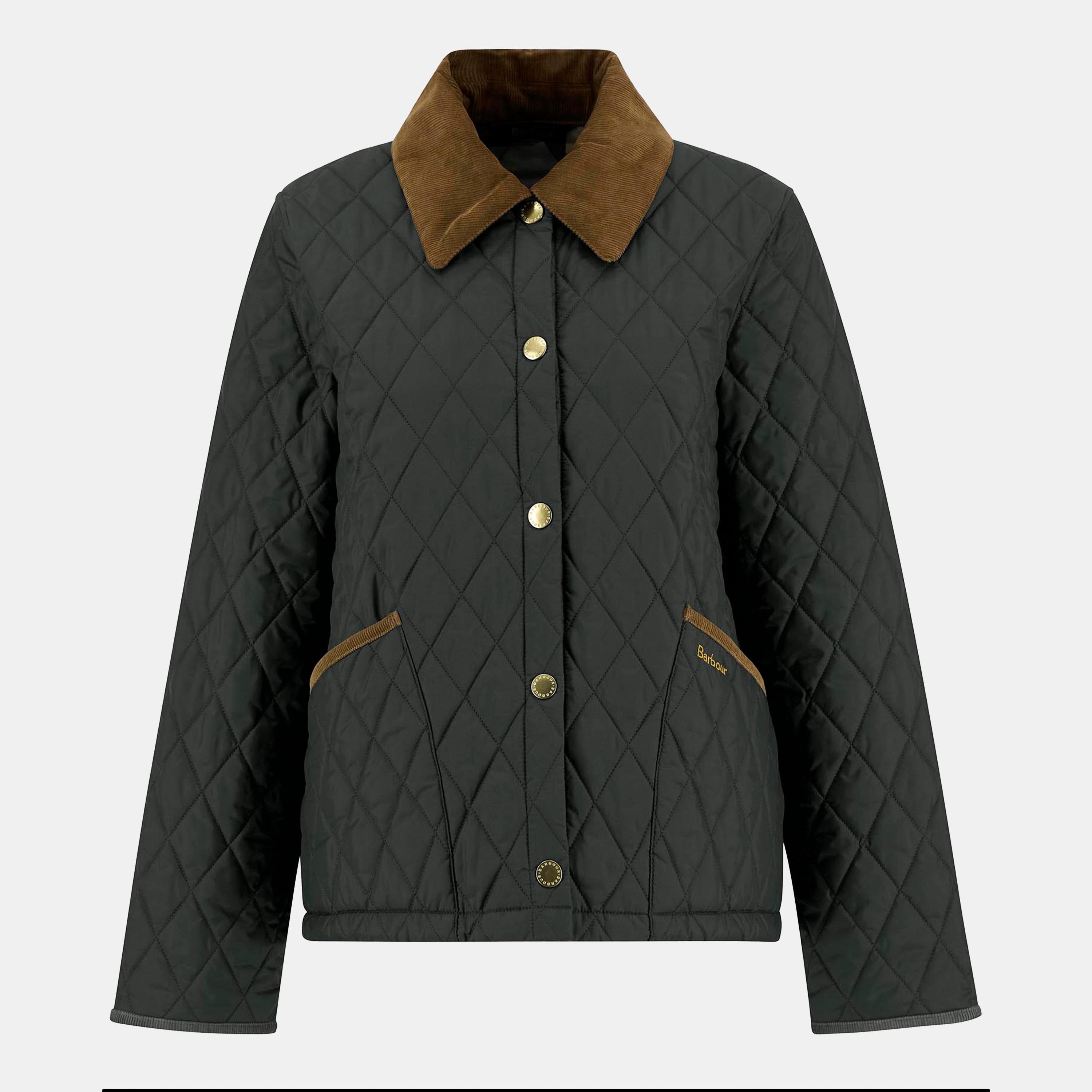 The Barbour Women's Liddesdale Cropped Diamond Quilted Jacket revisits heritage styling with classic diamond quilting and bold cord trims. Featuring a chunky cord collar and tartan lining, this piece pays homage to the brand's Scottish roots and is suited for autumn wear.
