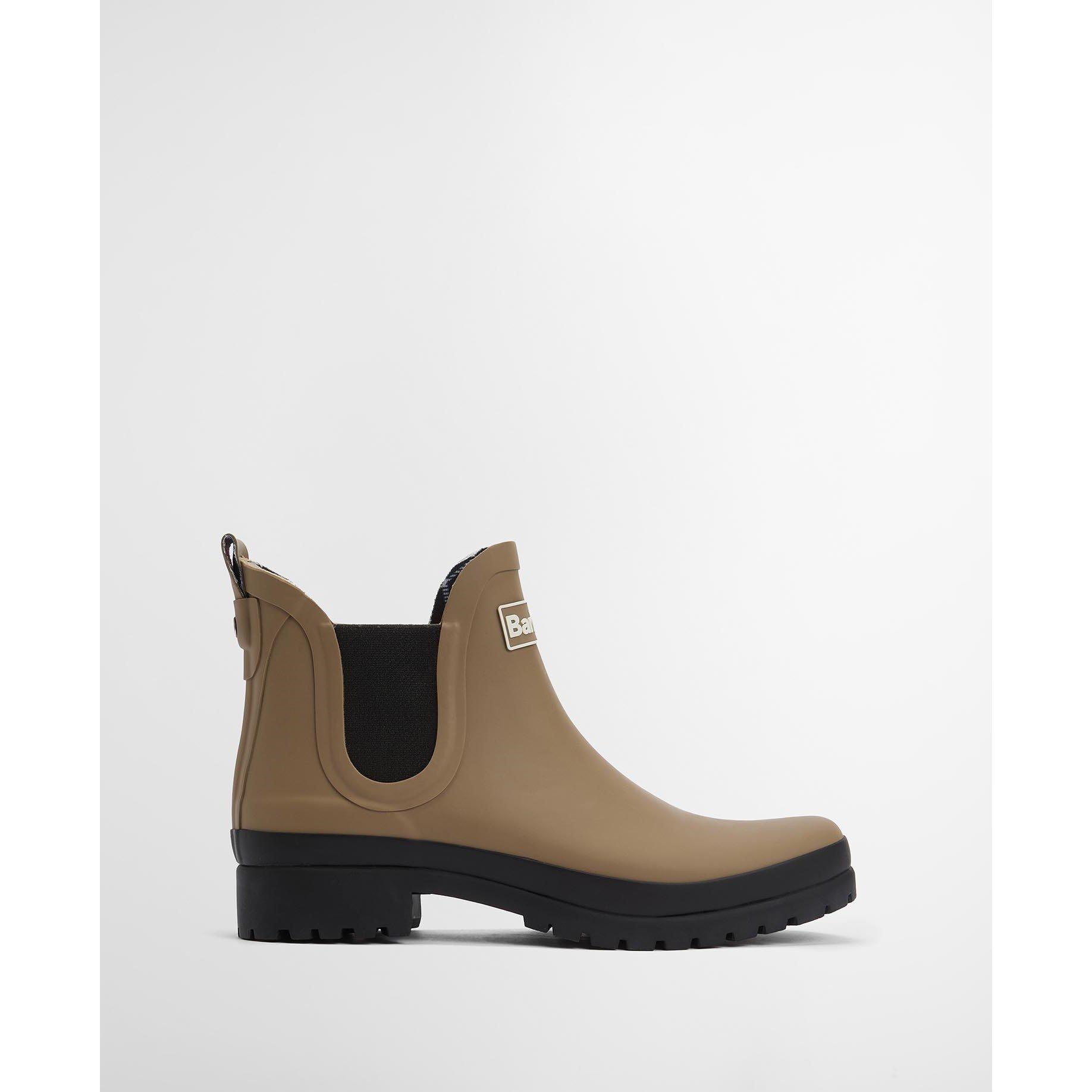 A modern interpretation of the classic Chelsea boot, the Mallow style is both sleek and weatherproof. They’re imagined in 100% rubber with elasticated side gussets to make dressing easy, as well as Barbour branding for a signature finish.anding for an iconic touch.