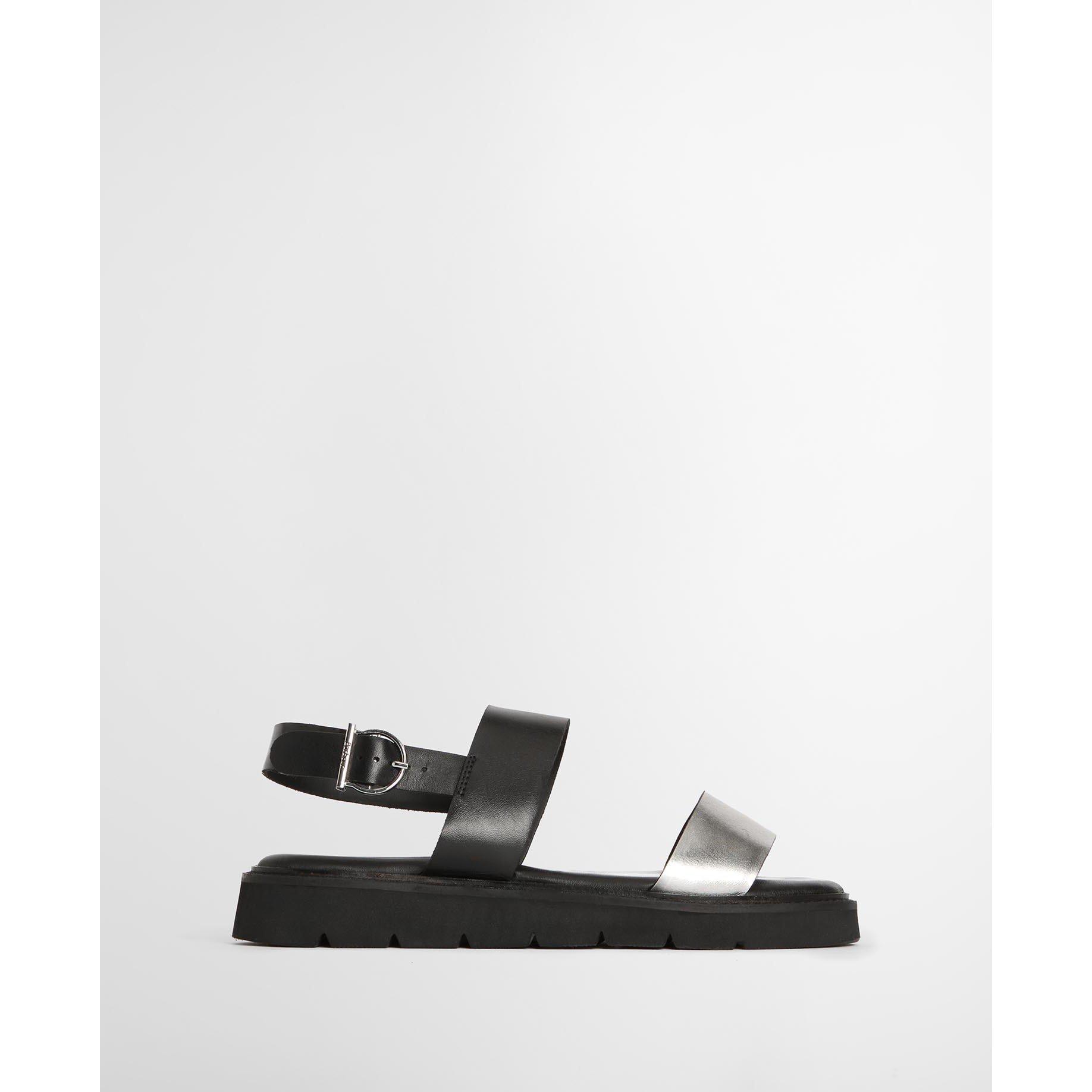 The sleek colourway ensures the sandals are easy to pair and contrasts with the metallic strap.