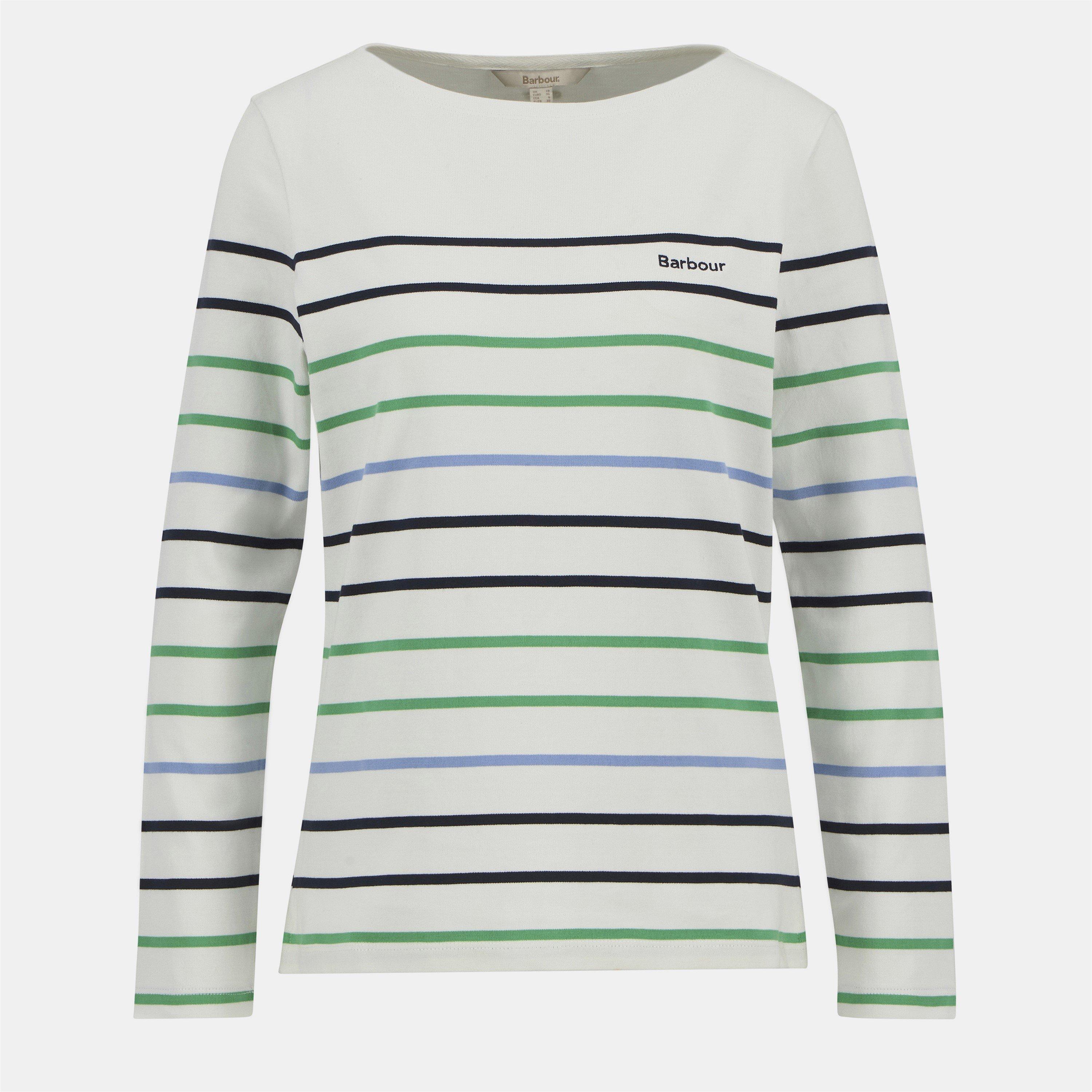 Add a new staple to your everyday wardrobe with Barbour's Hawkins Striped Long Sleeved Top. Expertly crafted in a single jersey knit and easy to wear, this women's tee is perfect for meeting friends for a coffee, running errands at the weekend or relaxing at home.