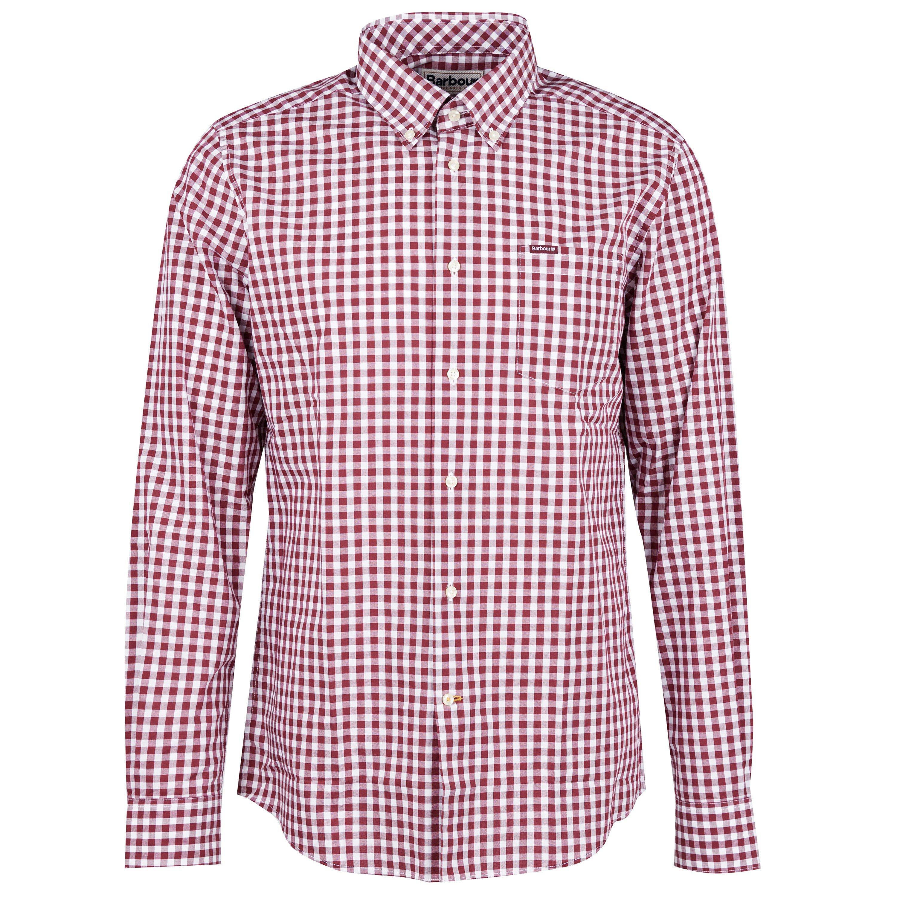 The Barbour Merryton Tailored Shirt is a great addition to your smart casual wardrobe. Crafted in a pure cotton composition, this shirt is cut in a regular fit and boasts a button down collar with central button fastening, long sleeves, buttoned cuffs and a curved hemline for a classic style. Showcasing a small scale gingham pattern throughout, this shirt offers a smart casual staple and is finished with a Barbour and Shield branded label to the spade pocket on the left chest for subtle brand recognition. Machine washable at 30 degrees.