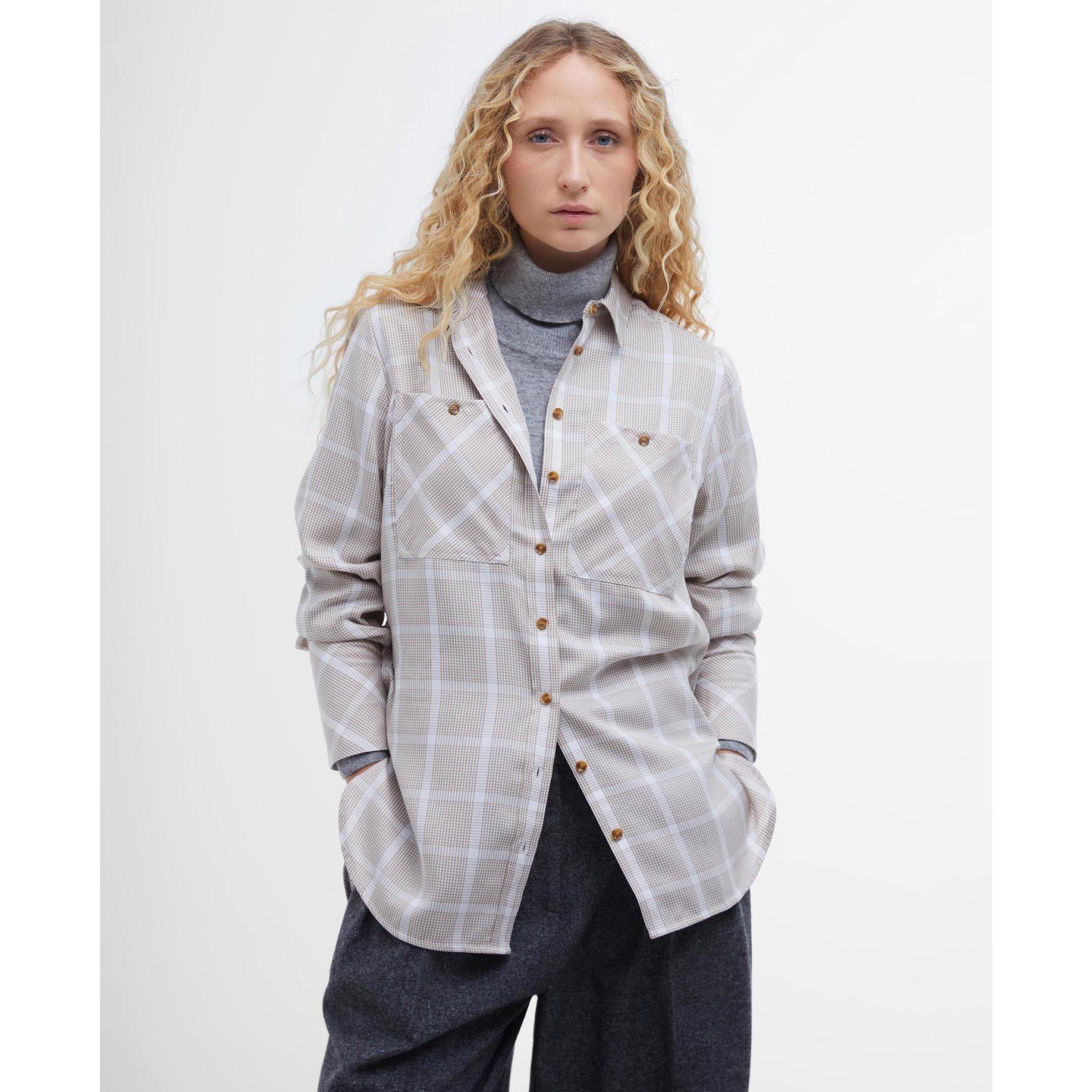 Pulling inspiration from our men's tailoring, the Barbour Rhonda Long-Sleeved Shirt offers a timeless check to your smart-casual wardrobe. Cit tp a relaxed fit, this lightweight shirt features two oversized chest pockets, deep cuffs and mock horn button fastening for an effortless take on modern tailoring.