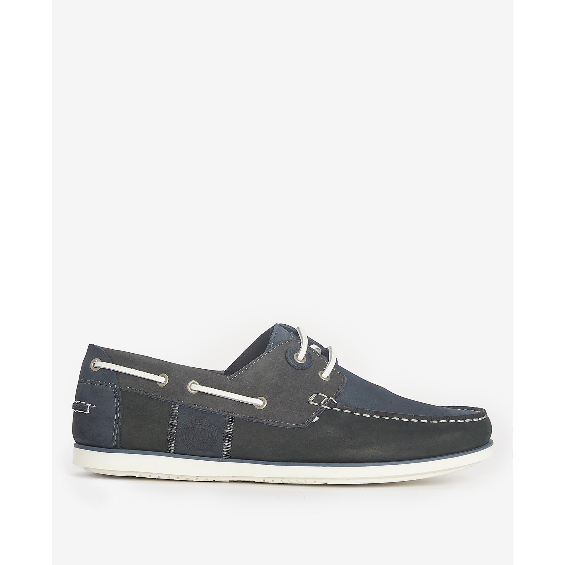 Crafted from a mix of smooth leather and plush suede, the Barbour Wake boat shoes provide style and comfort. This pair features a round toe, contrast stitching and a Barbour branded outsole.