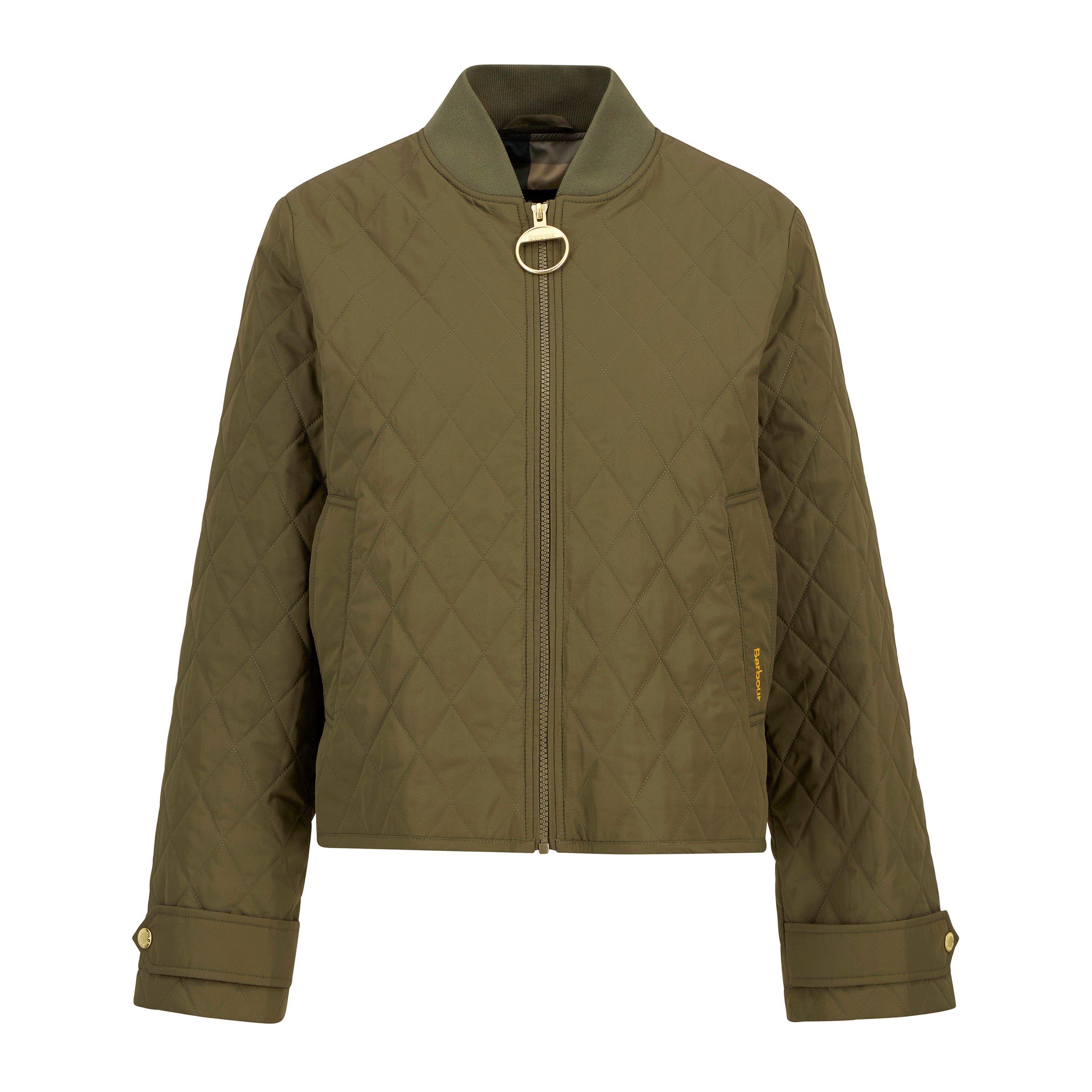 - Barbour logo at the left pocket and signature diamond box quilting.