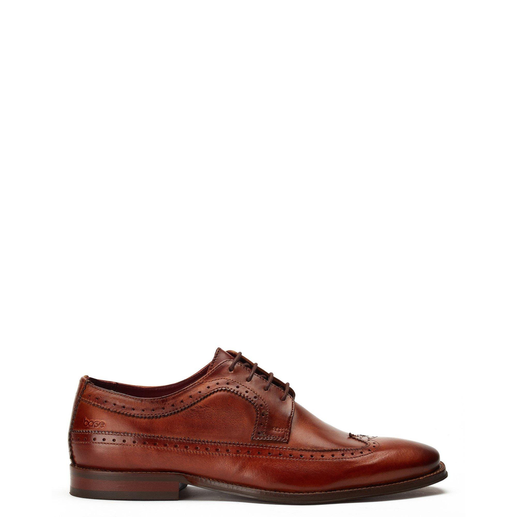 Crafted from smooth leather uppers, the Havisham formal men's shoe features beautiful brogue detailing and a wing tip that runs all the way to the heel where a Base brand can be found embossed into the leather.