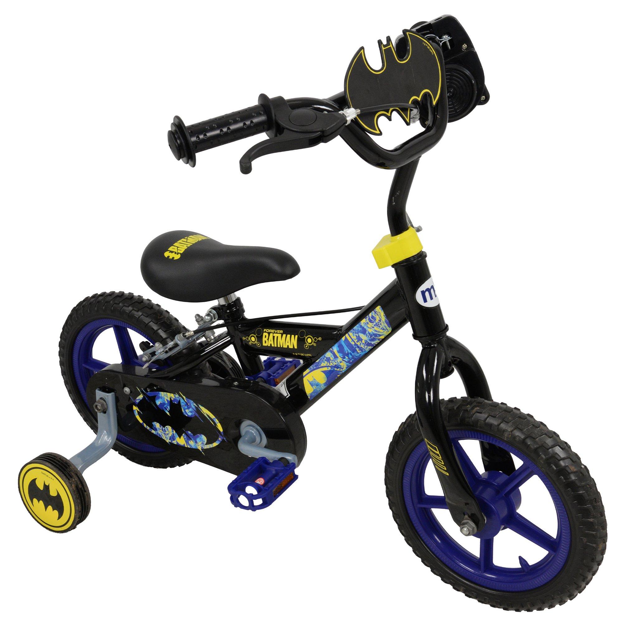 Introducing the Batman Revver 12 Bike, the ultimate ride to patrol the streets! Featuring vibrant graphics, bat shaped plaque and sound revver this bike is sure to inspire endless adventures. Built with a robust steel frame and puncture-proof EVA tires, it ensures durability and stability for little riders. Equipped with rear calliper brake for swift stops and a fully enclosed printed chainguard for added safety. Plus, with adjustable handlebar and seat heights, it grows with your child as they build confidence and coordination. Whether they're cruising with stabilizers or mastering balance on their own, this bike promises a smooth and comfortable ride every time. EN71 tested and CE UKCA compliant for peace of mind. Get ready to ride around Gotham city in style with Batman on the 12 revver bike!