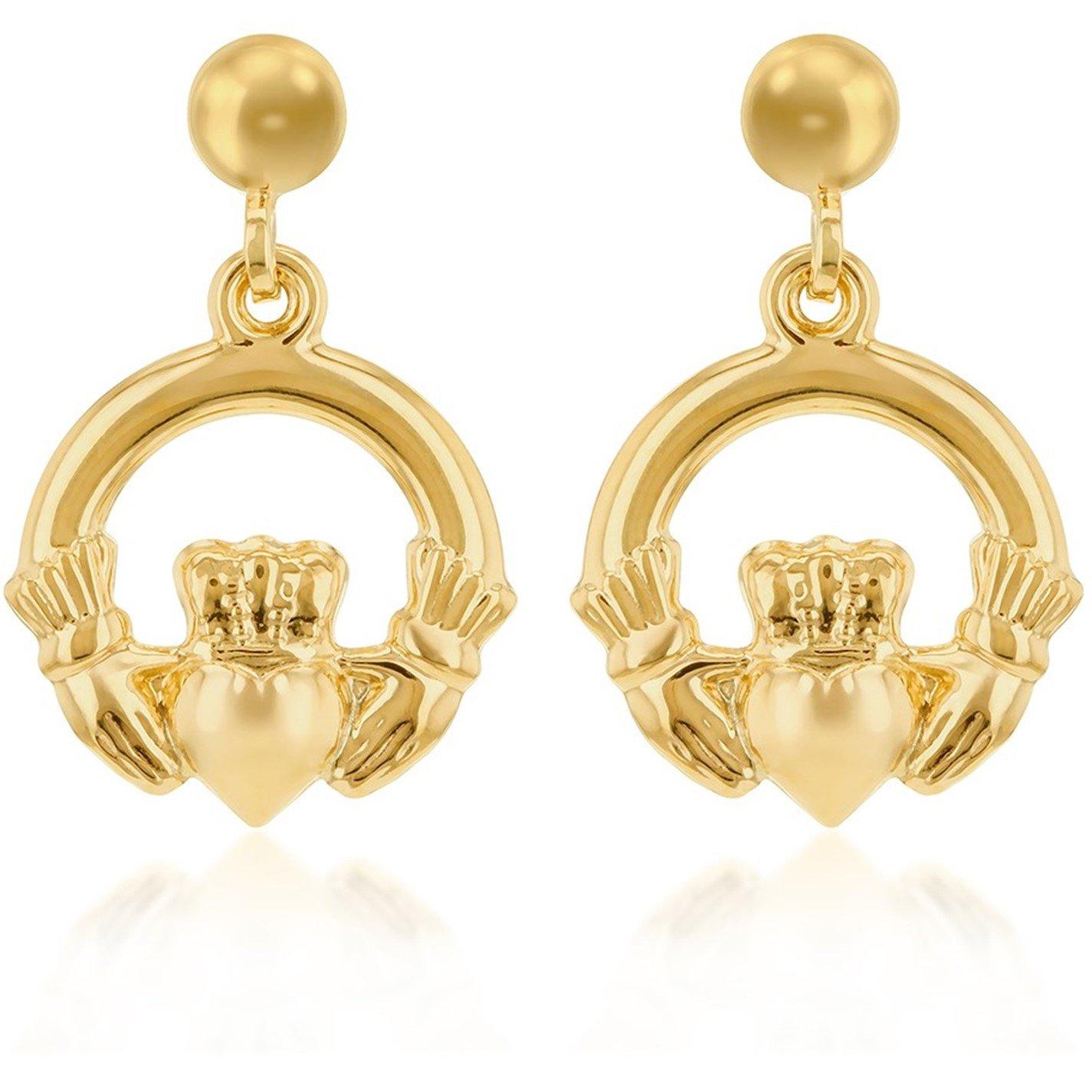 9ct Yellow Gold 19mm x 12mm Claddagh Drop Earring