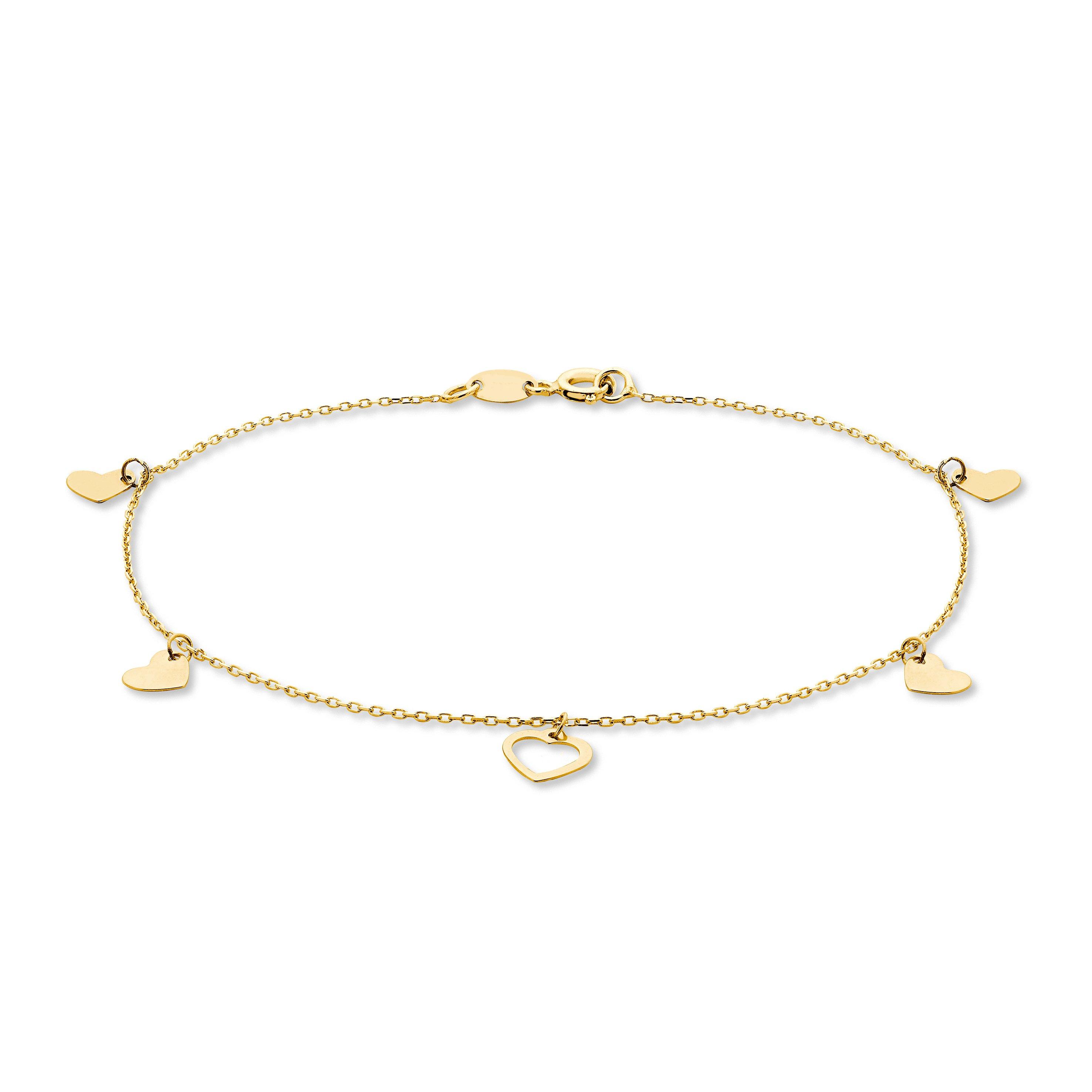 9ct Yellow Gold 5.5mm x 4.5mm Dangly Hearts Bracelet 19cm/7.5'