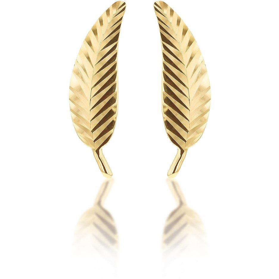 9ct Yellow Gold Diamond Cut Leaf Stud Earrings