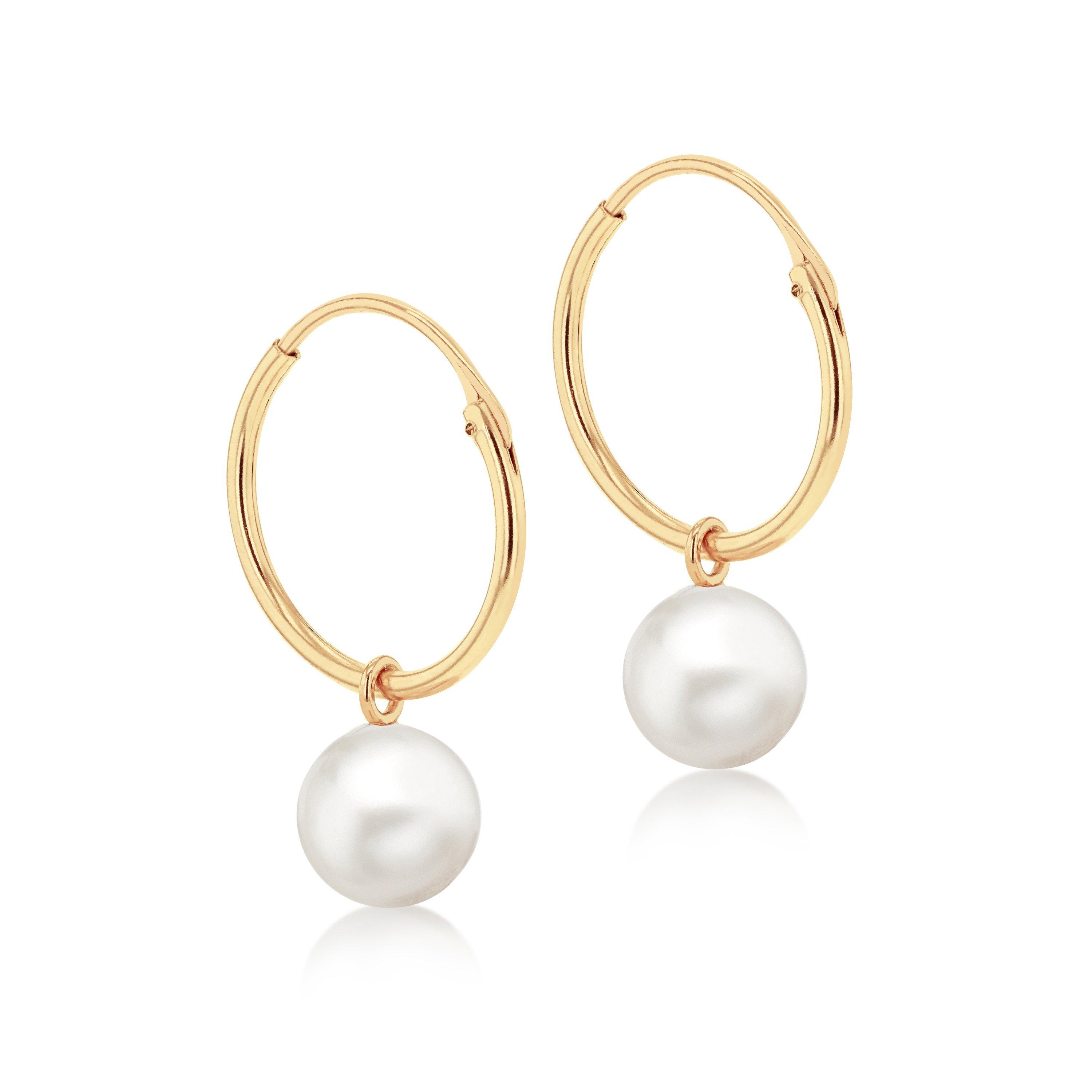 9ct Yellow Gold 6mm Fresh Water Pearl 13mm Endless Hoop Drop Earrings