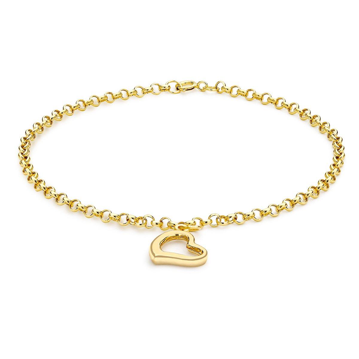 9ct Yellow Gold 14mm x 10.5mm Heart-Charm Bracelet 18cm/7'