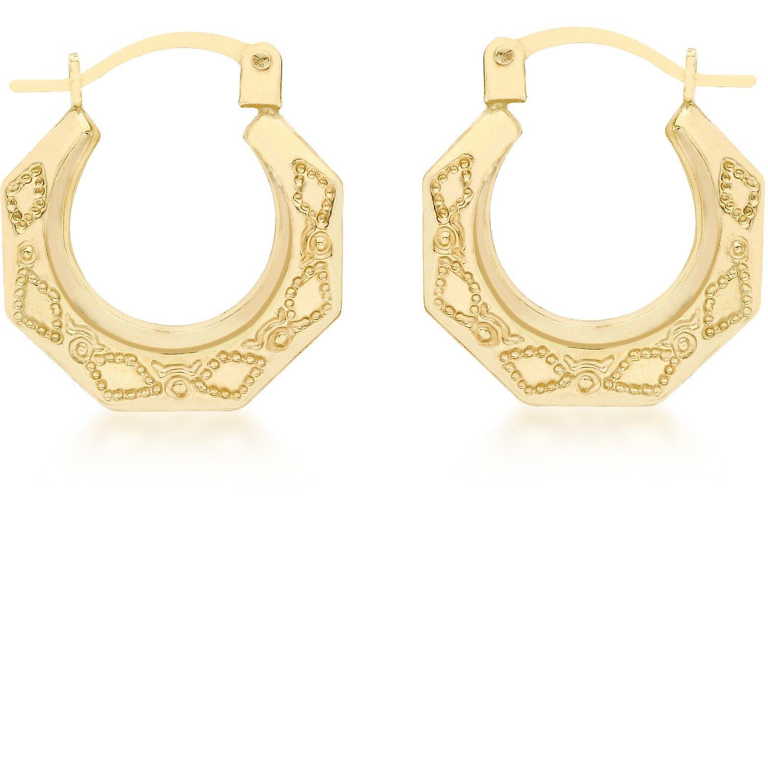 9ct Yellow Gold 14mm x 15.5mm Patterned Hoop Creole Earrings