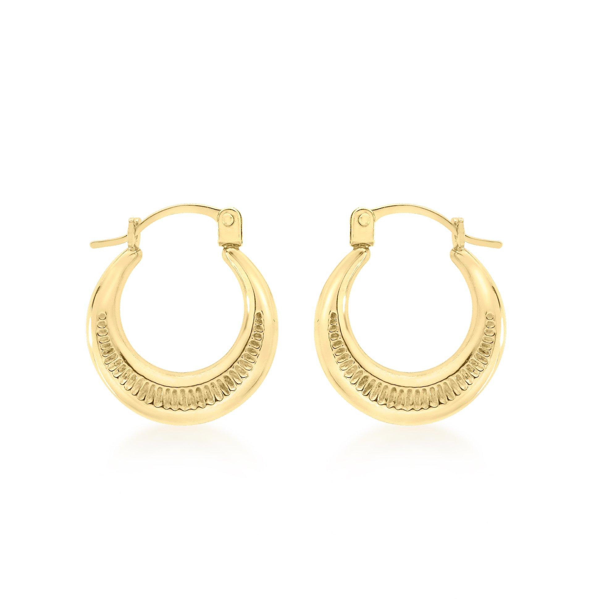 9ct Yellow Gold 14mm x 16mm Ribbed Round Creole Earrings