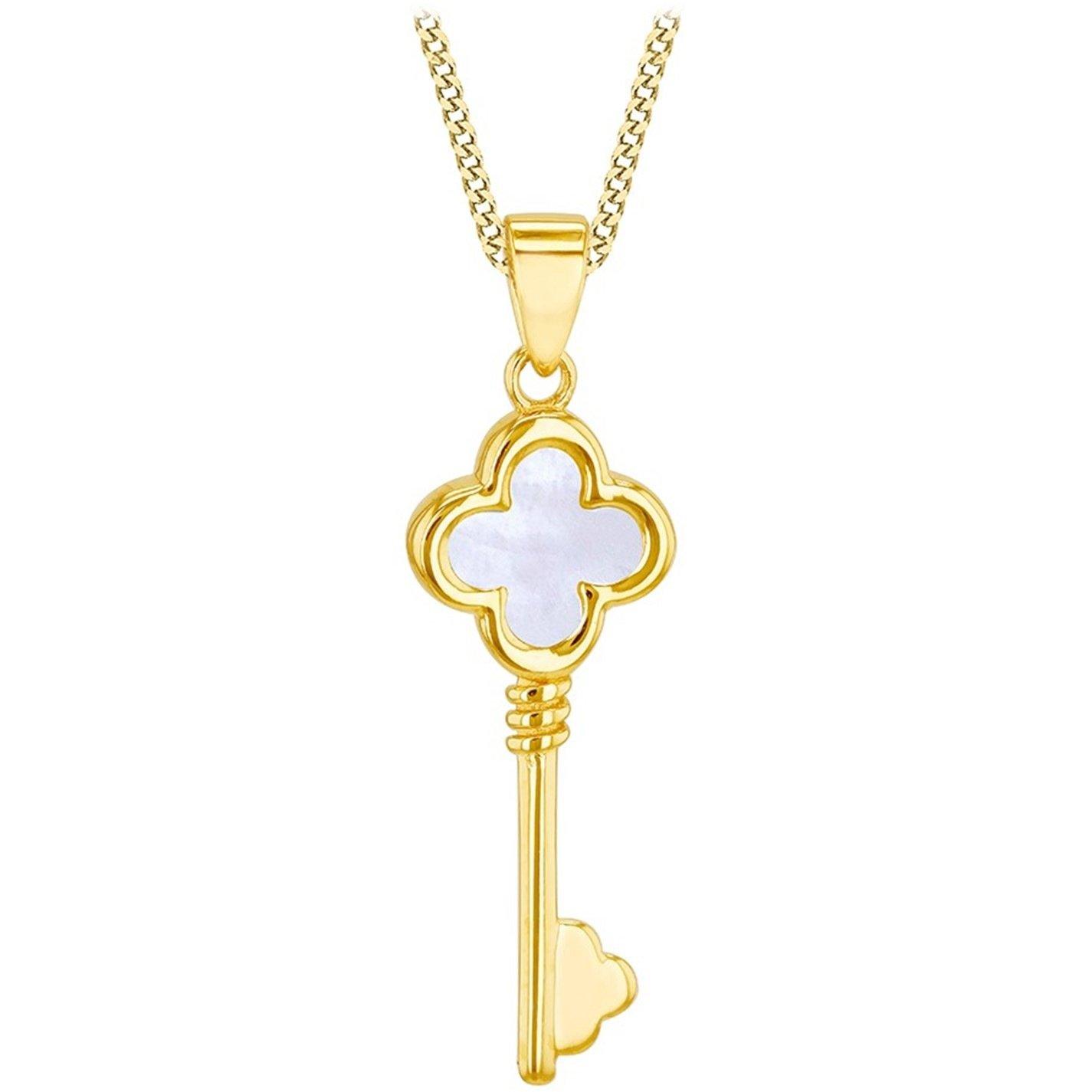 /Home/Accessories/Jewellery/Women's Jewellery/Necklaces/9ct Gold Mother of Pearl Clover Key Necklace