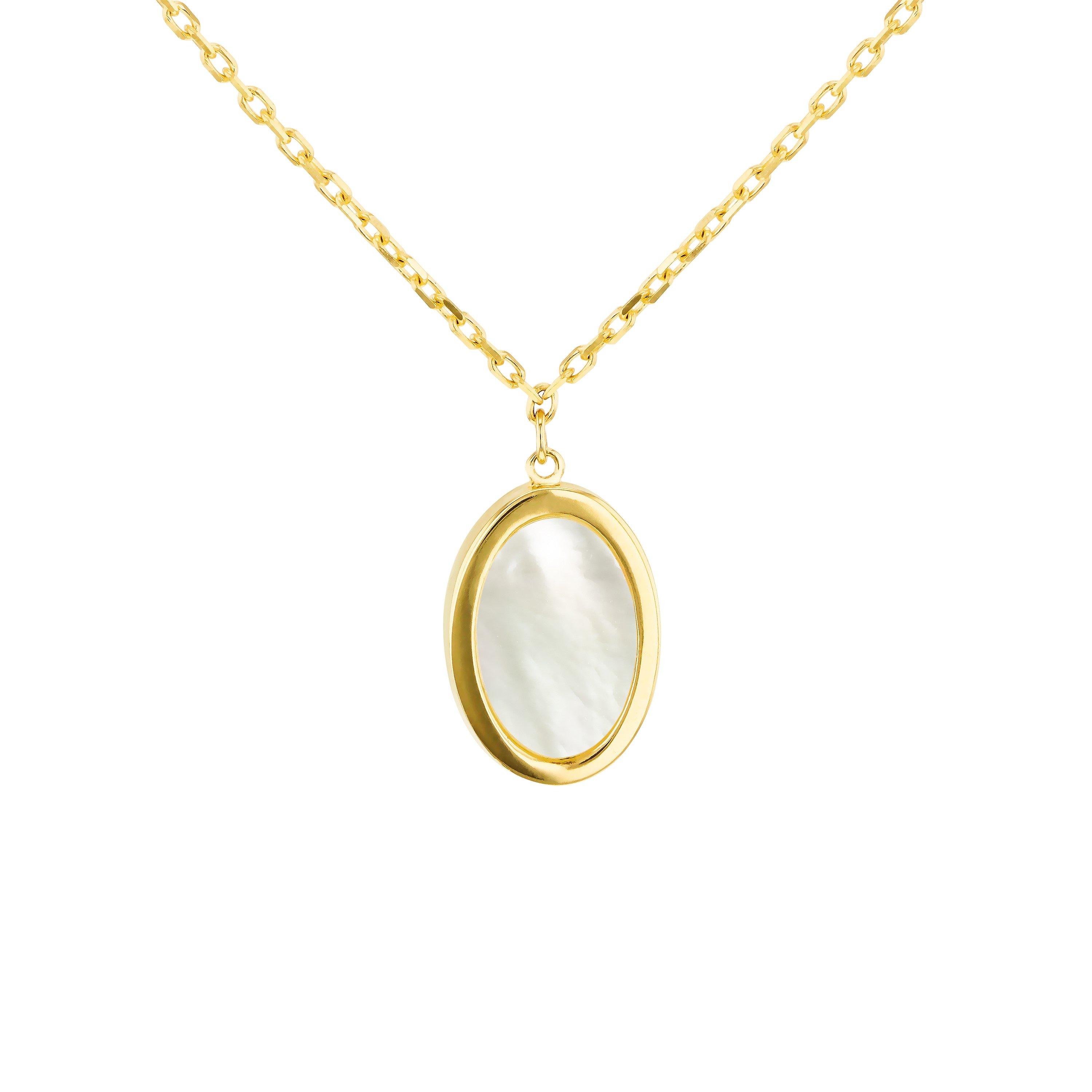 9ct Yellow Gold 11.5mm x 7.7mm Oval Mother Of Pearl Adjustable Necklace 41cm/16' - 46cm/18'