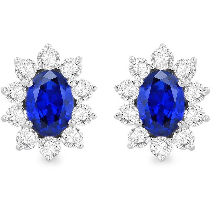 9ct White Gold 5mm x 7mm Oval Synthetic Sapphire and CZ Stud Earrings