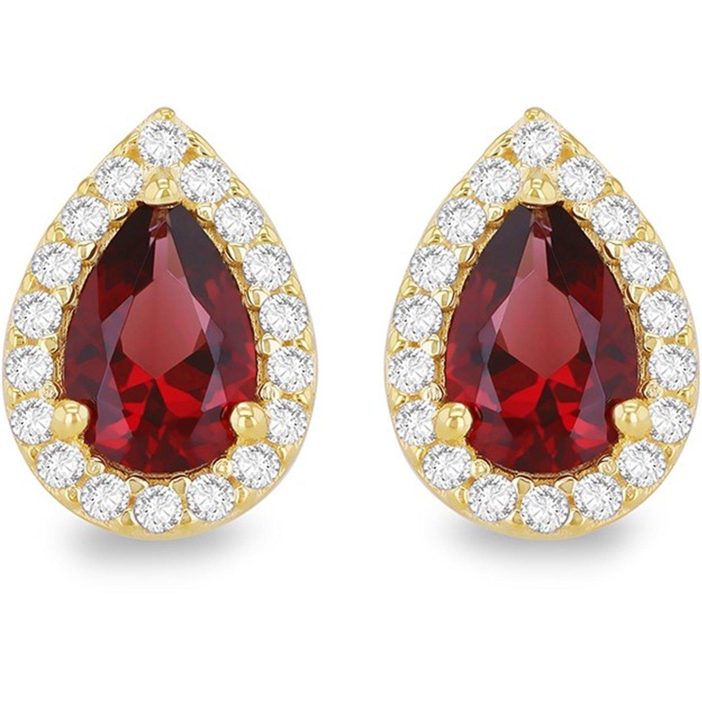 9ct Yellow Gold Red Pear Shaped CZ Halo Stud Earring