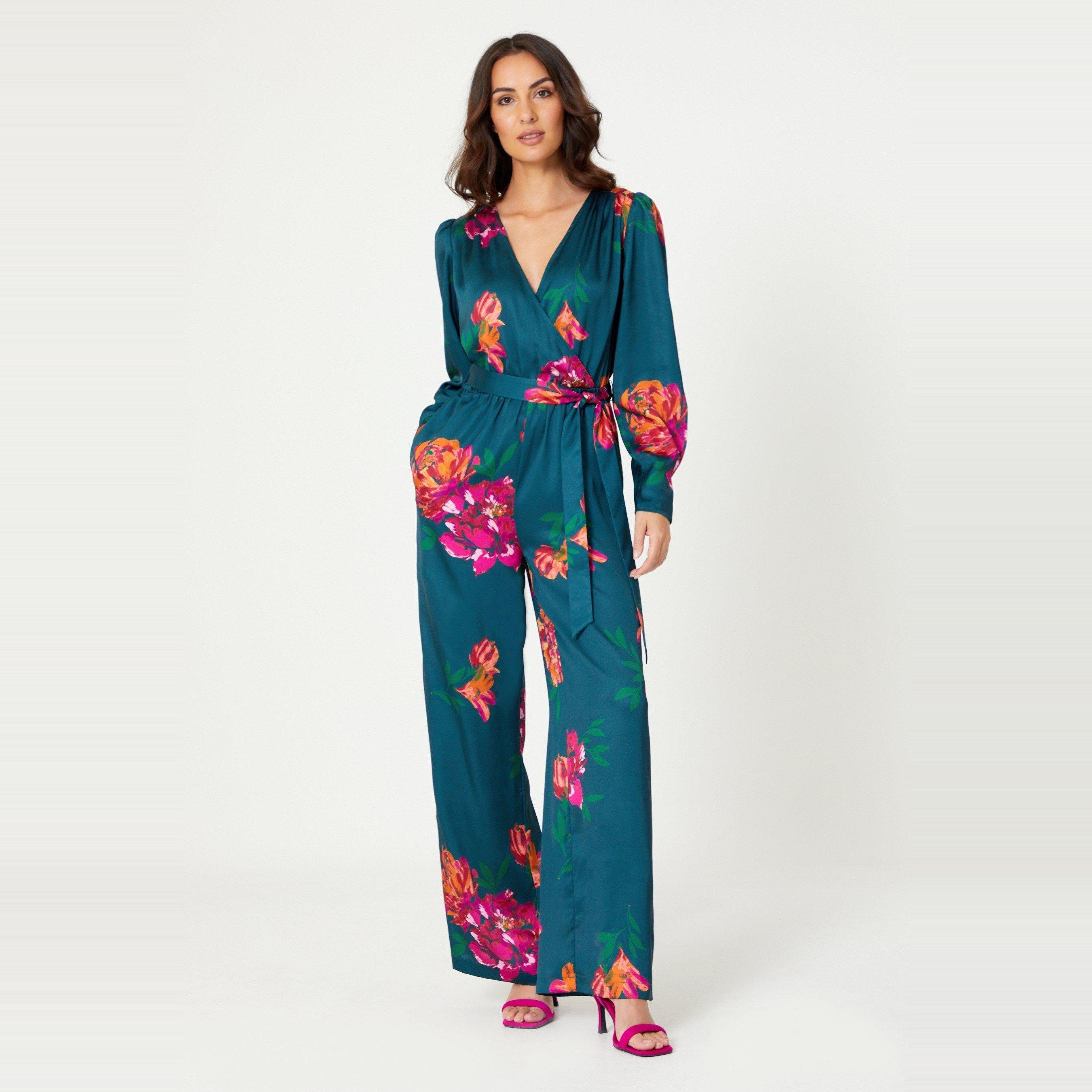 /Home/Sale/Women Sale/Sale Plus Size/Plus Size Playsuits and Jumpsuits Sale/Satin Satin Floral Wrap Jumpsuit