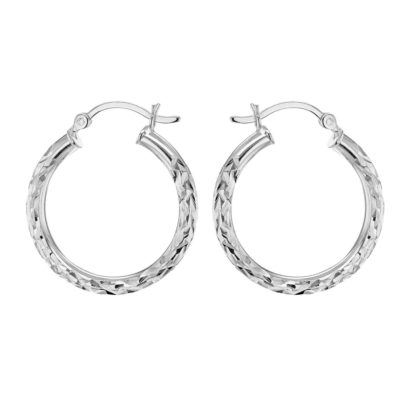 Sterling Silver 25mm Diamond Cut Hoop Creole Earrings