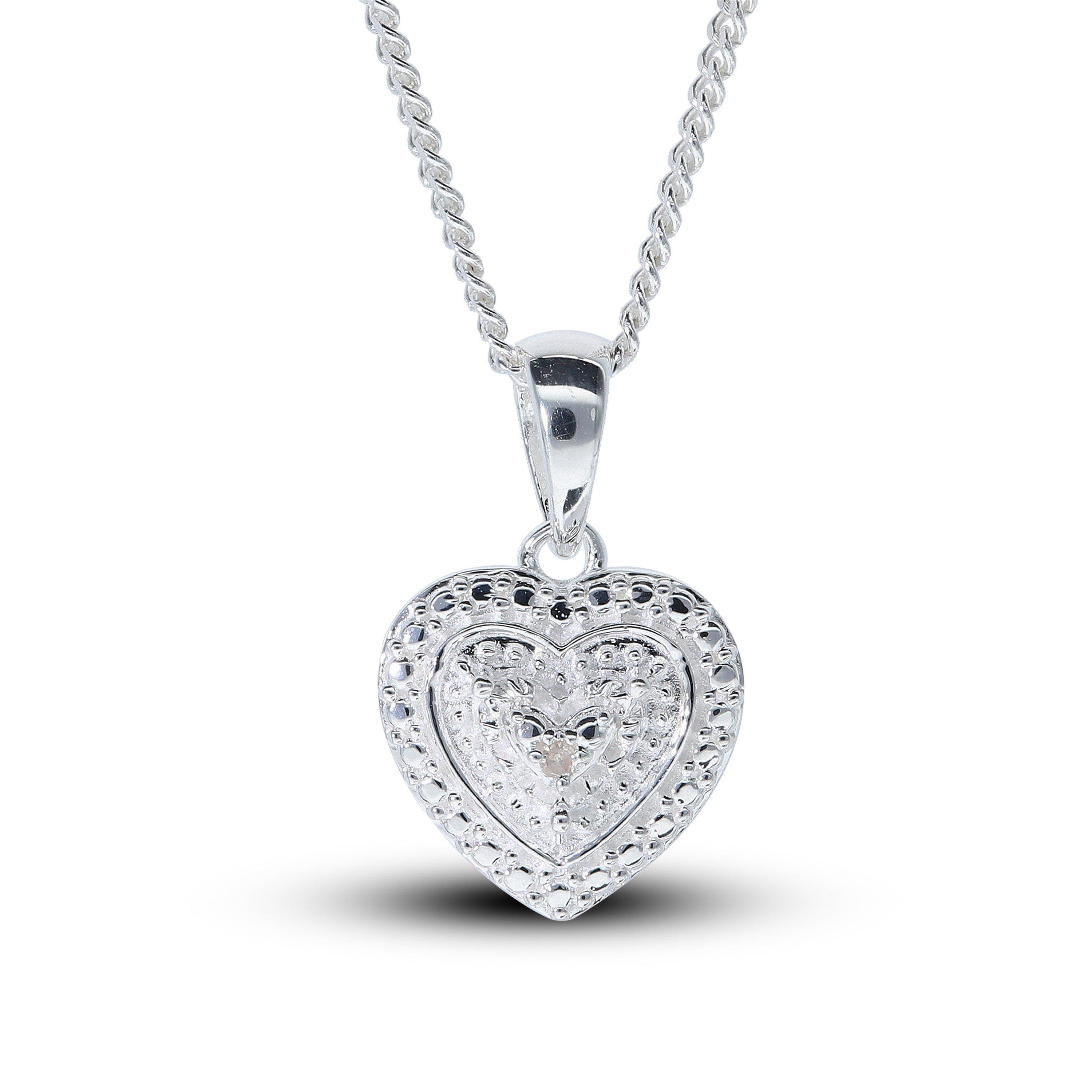 Designed to celebrate love in its purest form, this beautifully sculpted heart-shaped pendant is crafted from polished 925 sterling silver, and adorned with a subtle genuine diamond accent at its centre. Resting gracefully on an 18-inch trace chain, it offers a sleek silhouette that transitions seamlessly from day to evening wear.