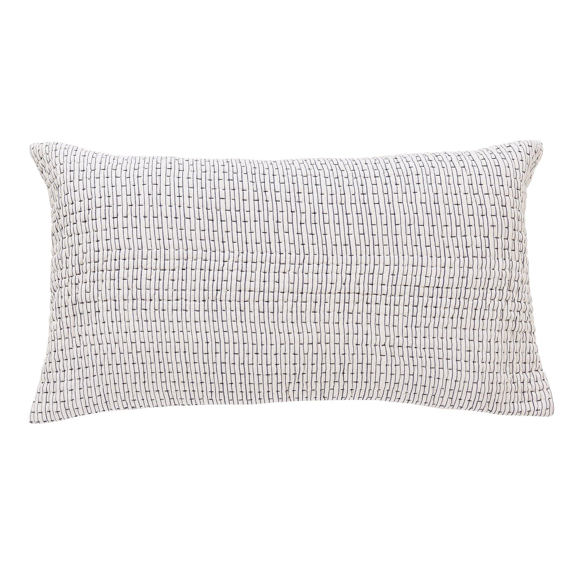 Perfect for adding a little understated pattern to any of the Rare Earth beds, the Serein cushion (70x40cms) features a linen/ cotton blend fabric printed with a vertical stripe and decorated with a hand quilted horizontal pattern. Each cushion is stitched by hand in India making each one completely unique. Cotton Linen, Print, Hand Quilted, Dry Clean Only