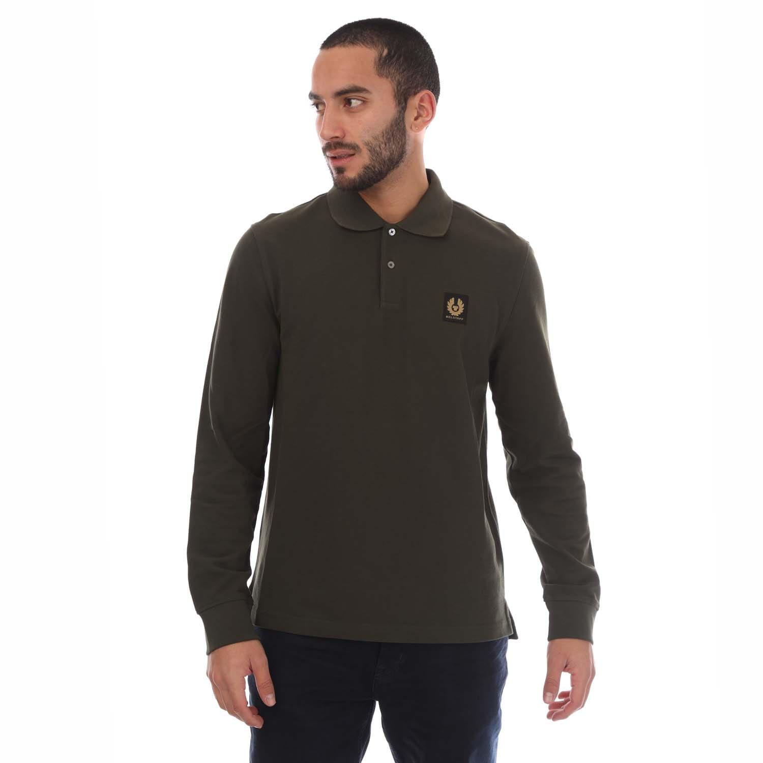 Mens Belstaff Long Sleeved Polo Shirt in green.