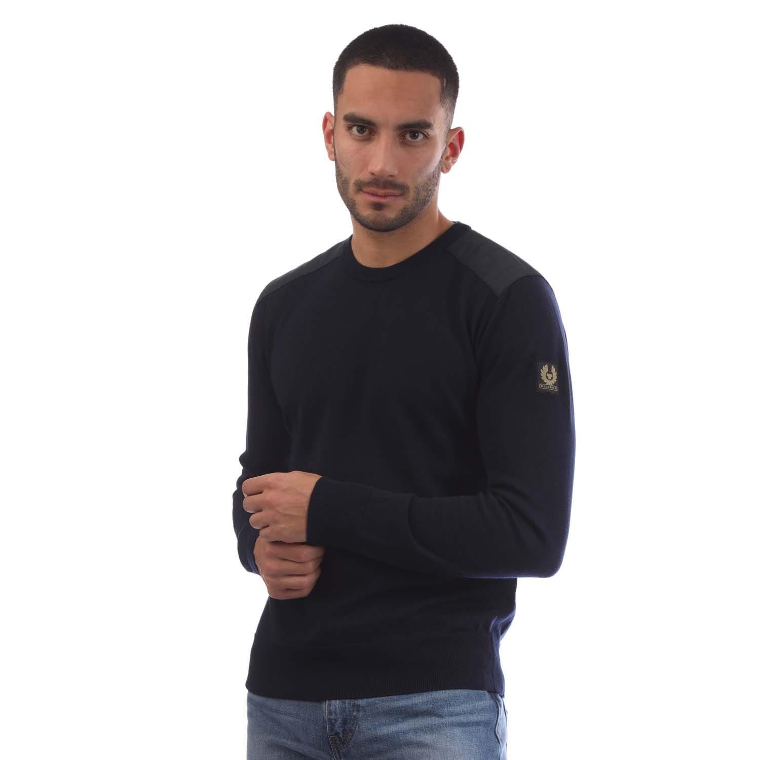 Mens Belstaff Merino Crew Neck Kerrigan Jumper in navy.