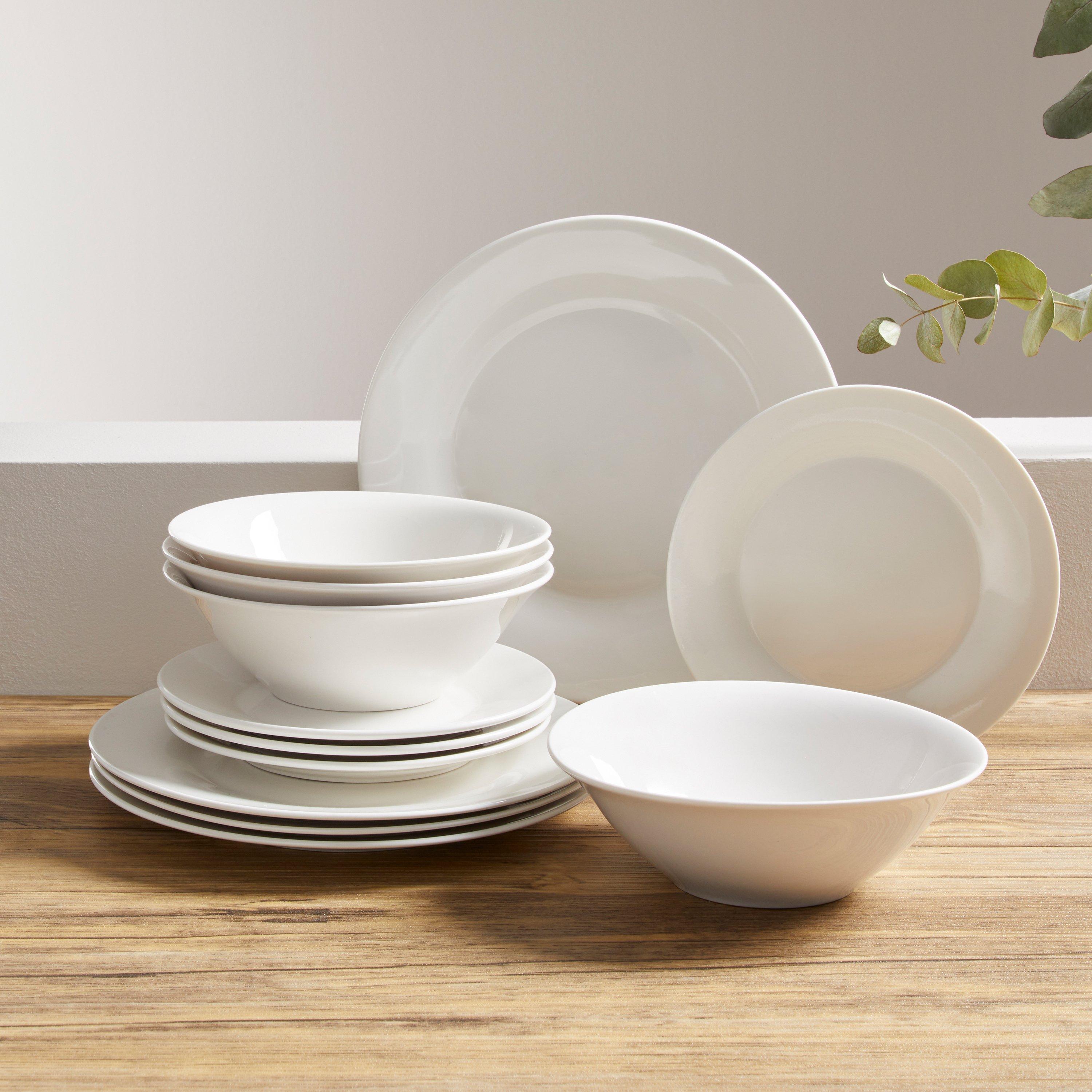 This set includes four dinner plates, four side plates, and four bowls, providing everything you need for a complete meal. The dinner plates measure 22.8cm, the side plates 18cm, and the bowls 17.9cm, ensuring that you have plenty of space for your favourite dishes. Made from porcelain, this dinner set is both microwave and dishwasher safe, making it both practical and convenient.