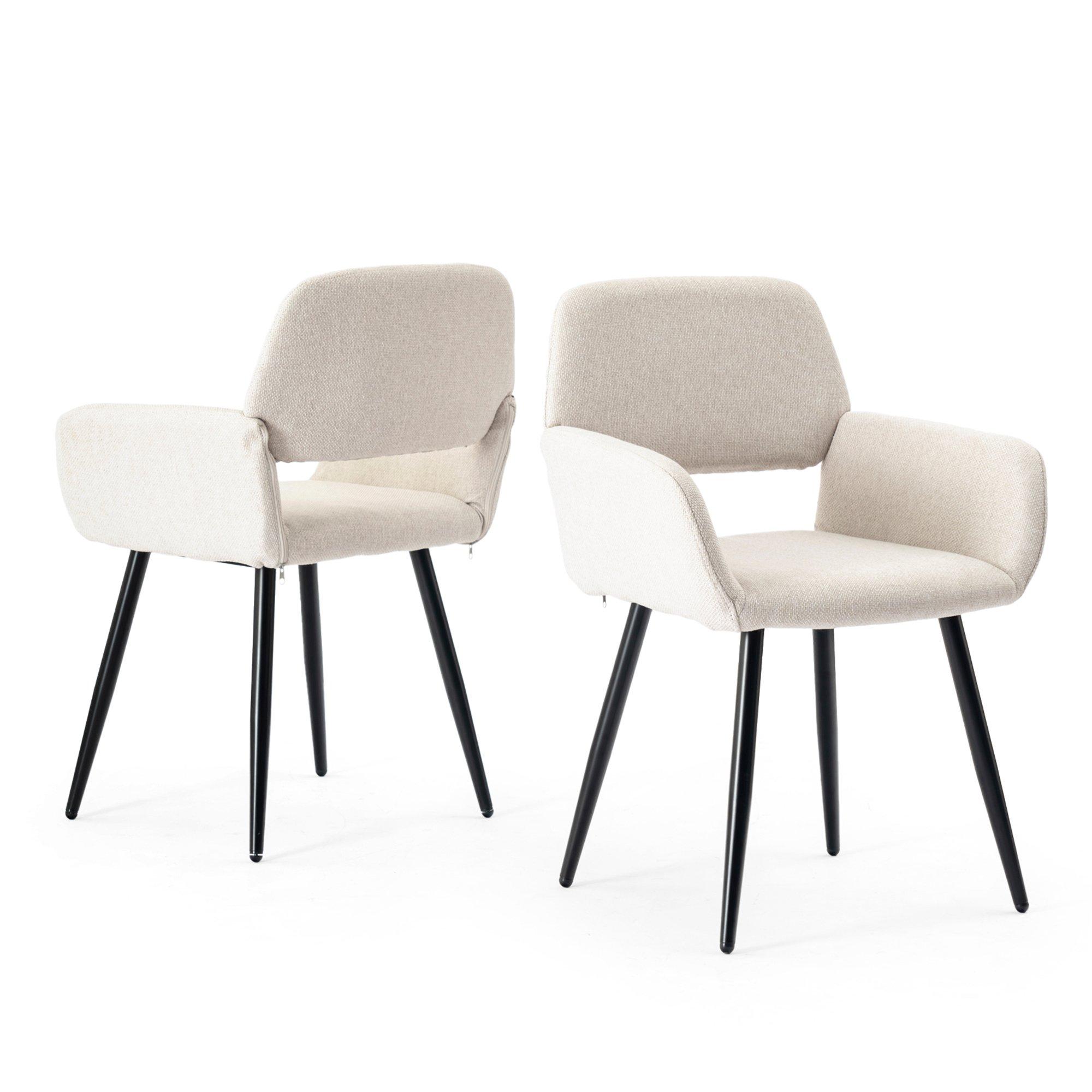 The Biba Mayfair Dining Chairs improves dining with their soft upholstered fabric and sturdy metal legs. Modern ergonomic design and comfortable armrests create an inviting form that complements diverse interior styles, ideal as a dining room set.