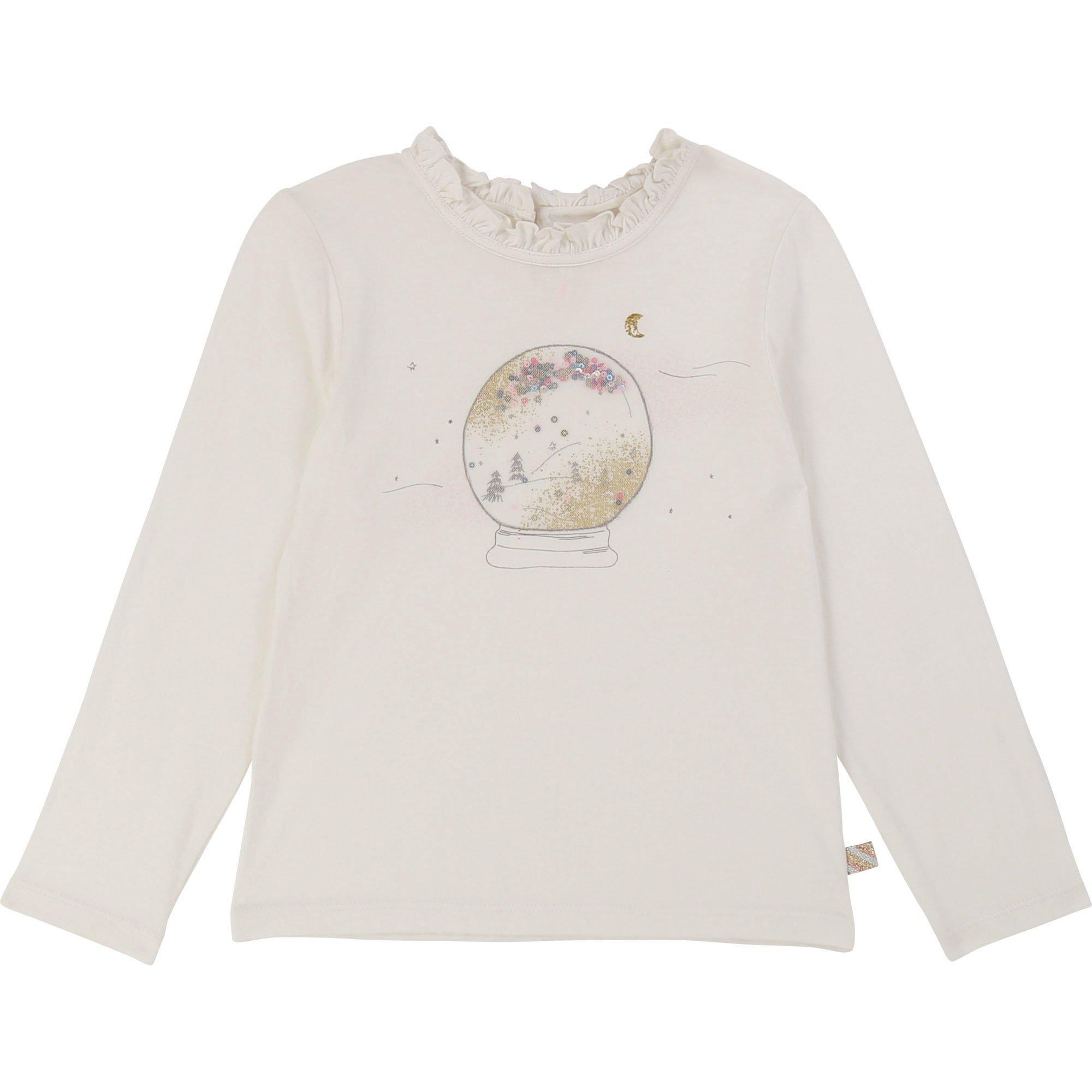 Crafted from 100% Cotton, this stylish T Shirt features long sleeves, a round neck, back button fastening and solid colour finish. Decorated with ruffle detailing to the neckline, the top has been decorated with a magic themed graphic printed to the chest for a playful aesthetic.