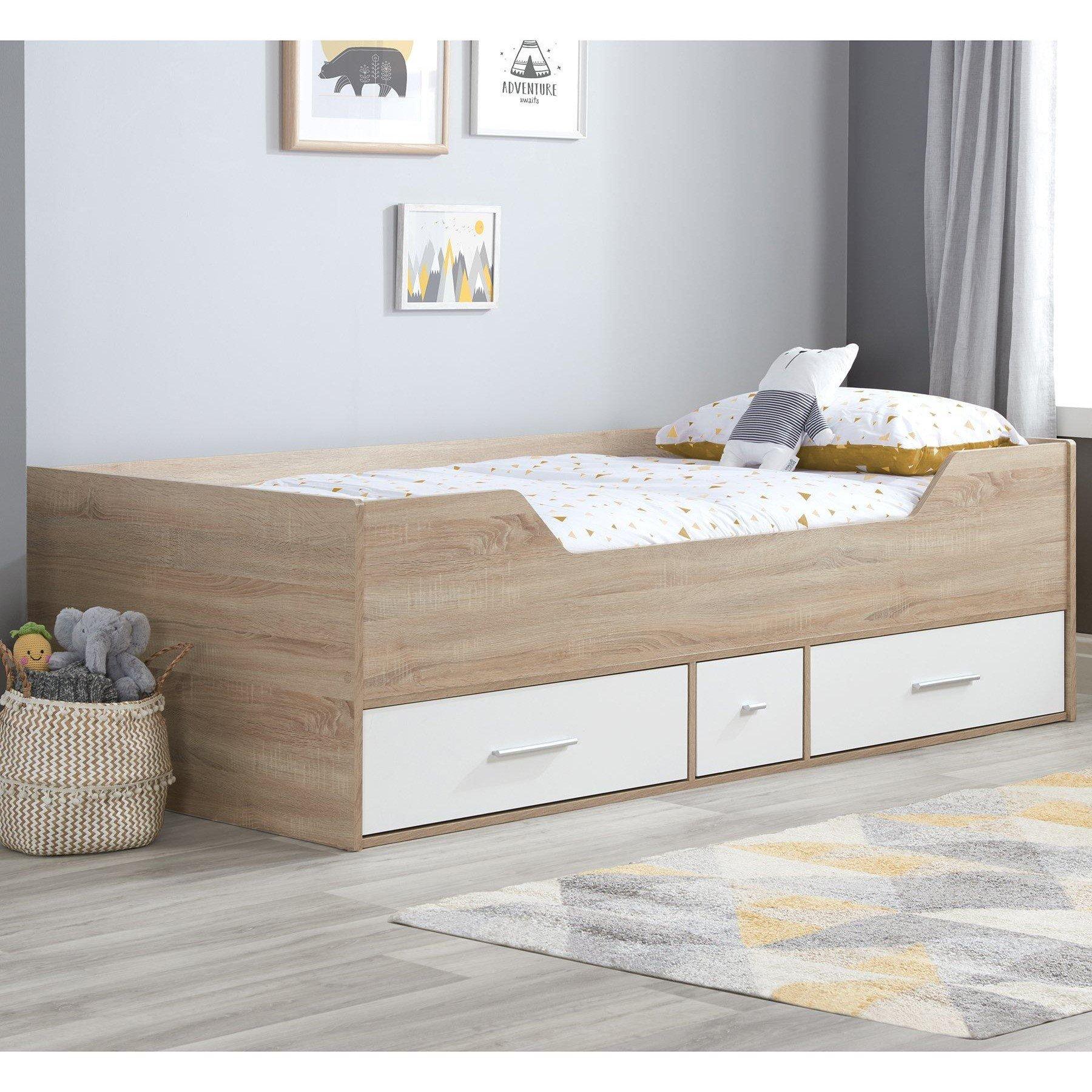 Bed Size (cm) 90 Bed Size (Feet) 3ft Bed Size (Type, ie. king, double etc.) Single Footboard Height (cm) 59.50 Headboard Height (cm) 59.50 Large Drawer Height (cm) 16.70 Length (cm) 195.60 Max Mattress Height (cm) 15.00 Max Weight Load (kg) 100.00 Number of drawers 3.00 Small Drawer Height (cm) 16.70 Width (cm) 97.60