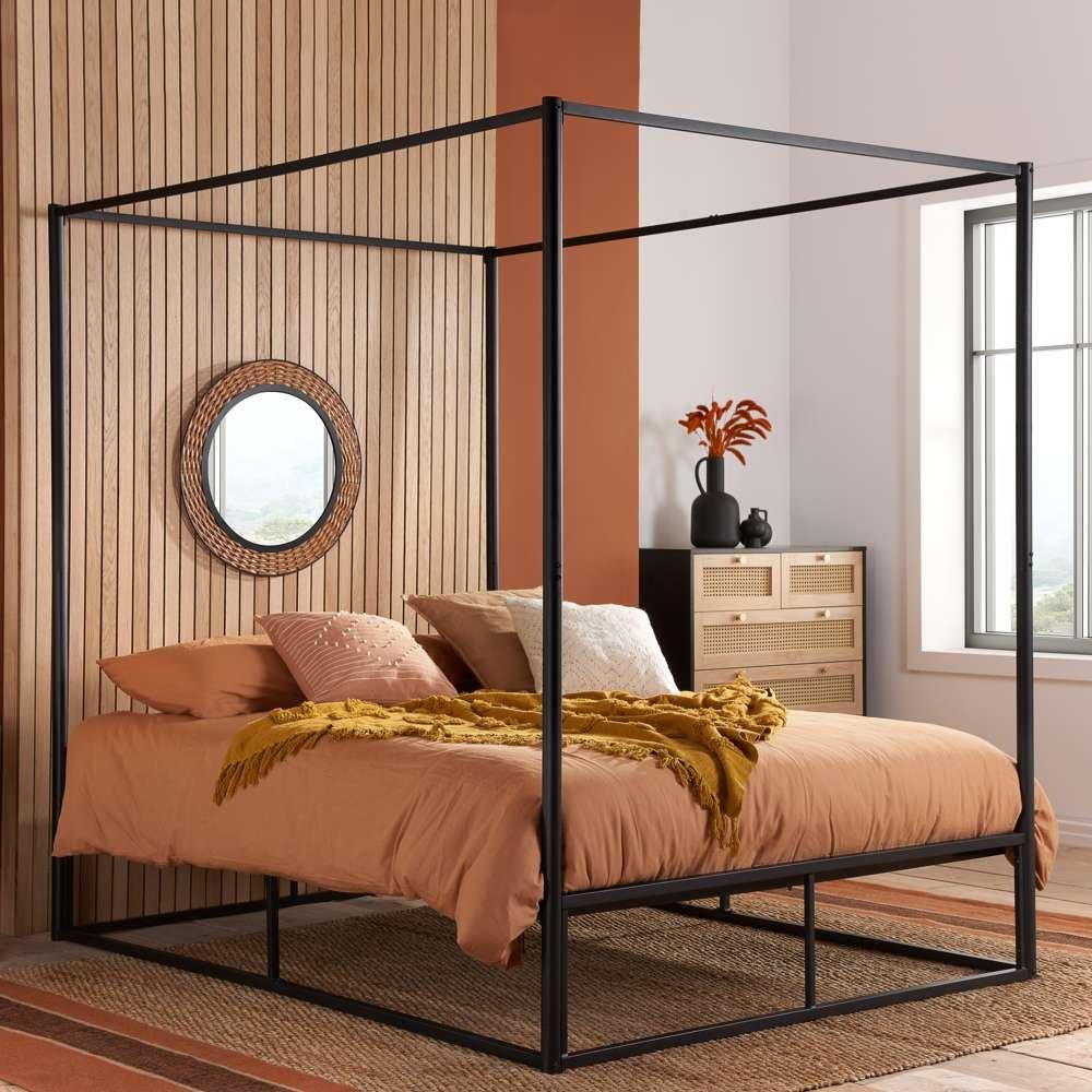 The Farringdon metal 4 poster bed will add a contemporary look into your bedroom. Constructed with a sturdy frame, the bed is durable to use and features a 4-poster design. The sleek design strips back the traditional bulky four-poster to a simple contemporary steel metal frame structure. The Farringdon also allows you to store items underneath the bed frame enabling you to make the best use out of any available space in your bedroom. The maximum weight load for the Farringdon frame is 150kg for the single and 300 kg for the double. Please note: Birlea beds are only suitable for a UK standard size mattress.