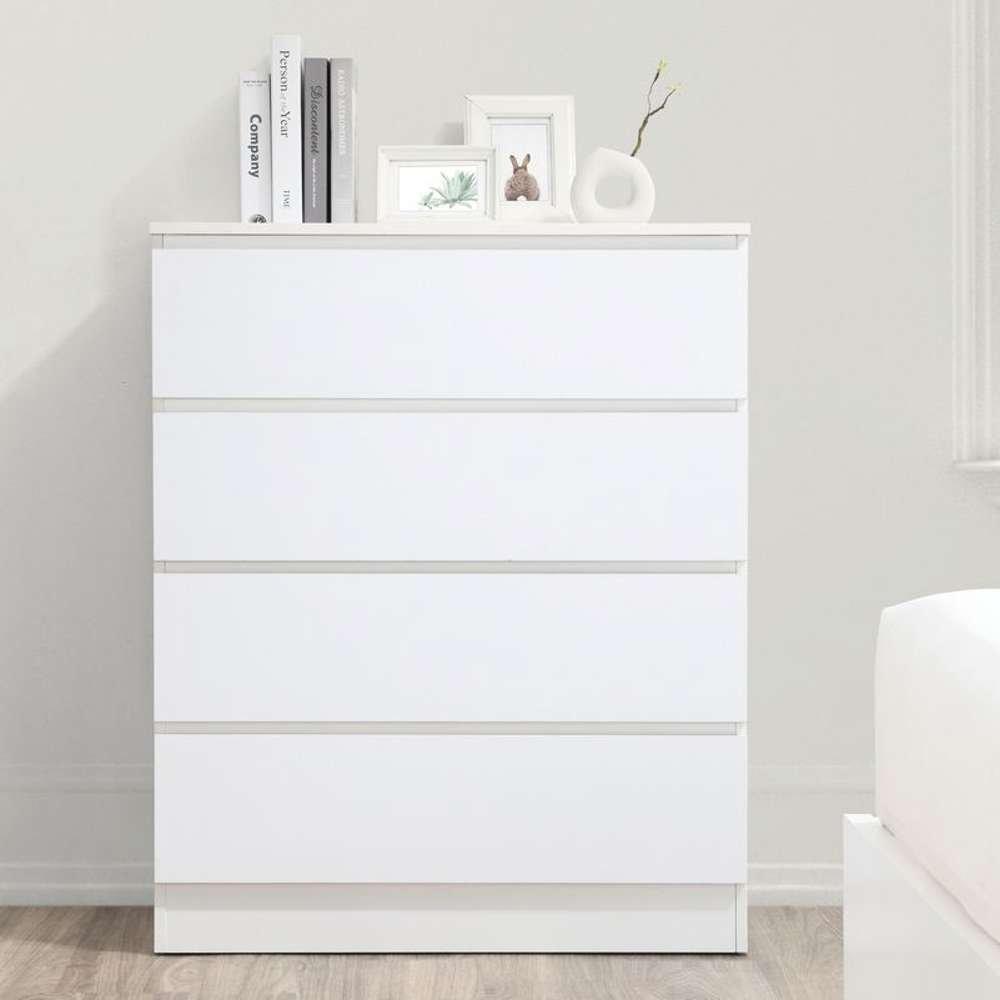 Modern & sleek the Oslo range is bedroom furniture with a streamlined design. It's simple design and minimal grooved handles has a sleek finish that pairs perfectly with any contemporary decor. The Oslo 4 Drawer Chest is designed with four spacious drawers and is ideal for storing away any belongings. Available in a choice of colours the Oslo range is ideal to accompany any bedroom. Care instructions: Wipe carefully with a soft, dry cloth.