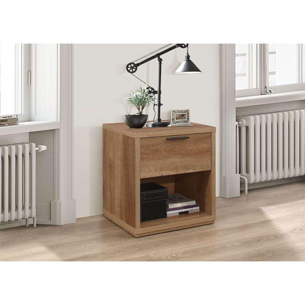 The Stockwell range provides a touch of reclaimed design to any home. It's rustic oak effect finish and sleek black handles create a truly rustic looking range. The Stockwell 1 drawer bedside features a handy drawer ideal for storing away any belongings. It also features a handle shelf ideal for storing larger object. It's simple to achieve a traditional farmhouse feel with items from the Stockwell range. It's a style so classic that it would work as well in a city flat as it would in a cosy cottage. Care instructions: Wipe with a soft, dry cloth.