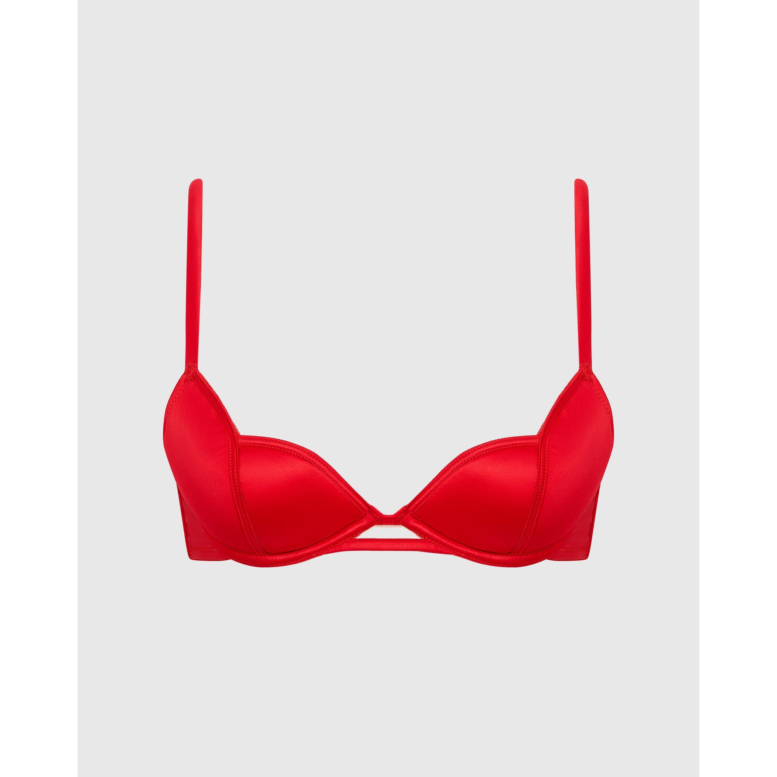 A striking piece crafted in fiery red luxury satin, the Cara Bra is designed for high impact with its push-up demi plunge construction with sculpted edges and a flirty keyhole front detail. Adjustable straps and a secure hook-and-eye closure provide comfort and support, ensuring you look and feel your best all day and night. A perfect pick for Valentine’s and beyond.