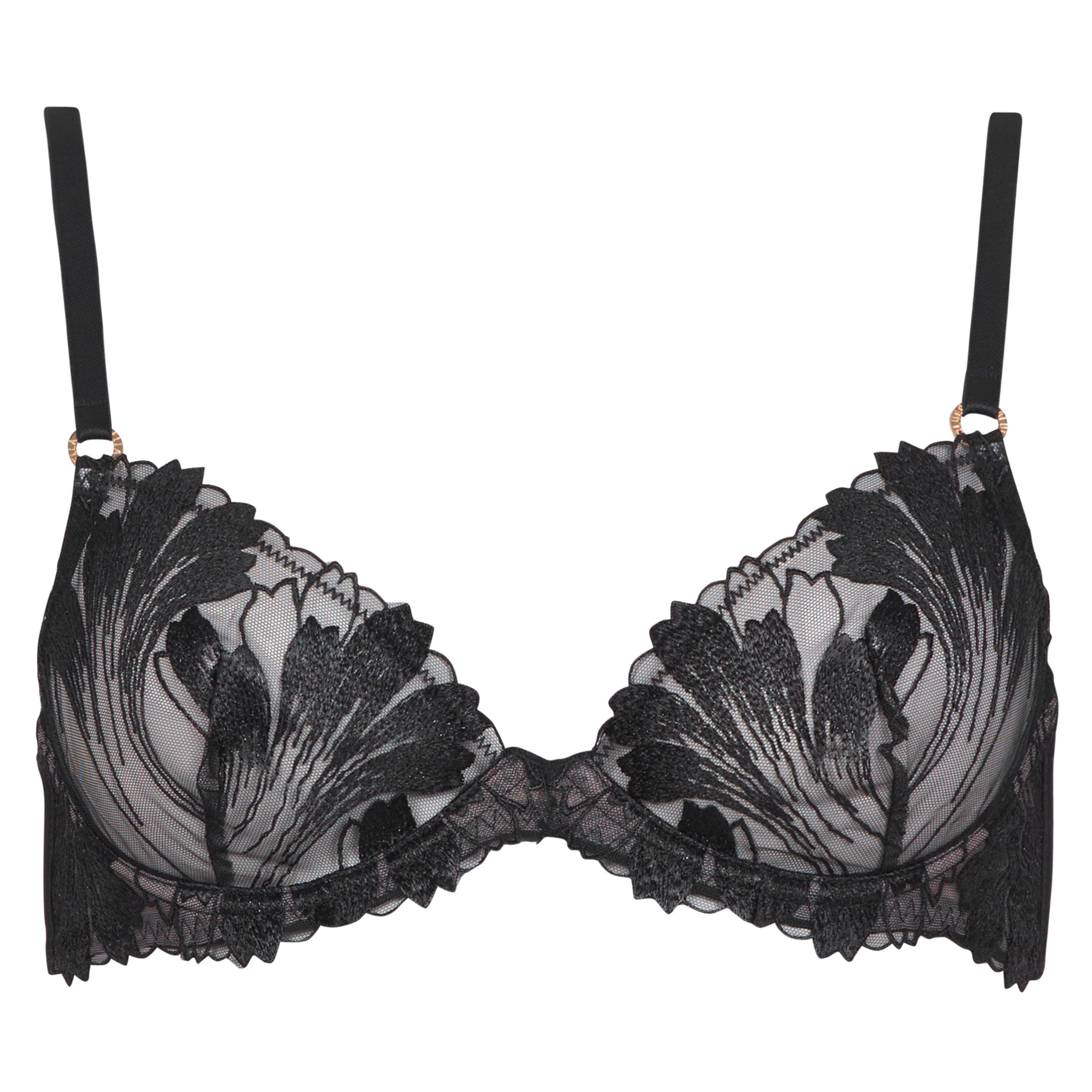 Styling a delicate embroidery to the main construction, the Colette Bra from Bluebella is made from a soft Polyamide fabrication for all day comfort. The sheer mesh embroidered cups are styled with a monochromatic flower motif for a feminine touch in a plunge style to create an elegant silhouette. For a comfortable and personal fit, this bra has adjustable straps and a hook-and-eye fastening with gold-tone hardware for a premium finish, complete with a blackstrap elevated with embroidery and mesh detailing and an underwired fit for lift and support. Embroidery: 100% Polyester. Mesh; 89% Polyamide and 11% Elastane.