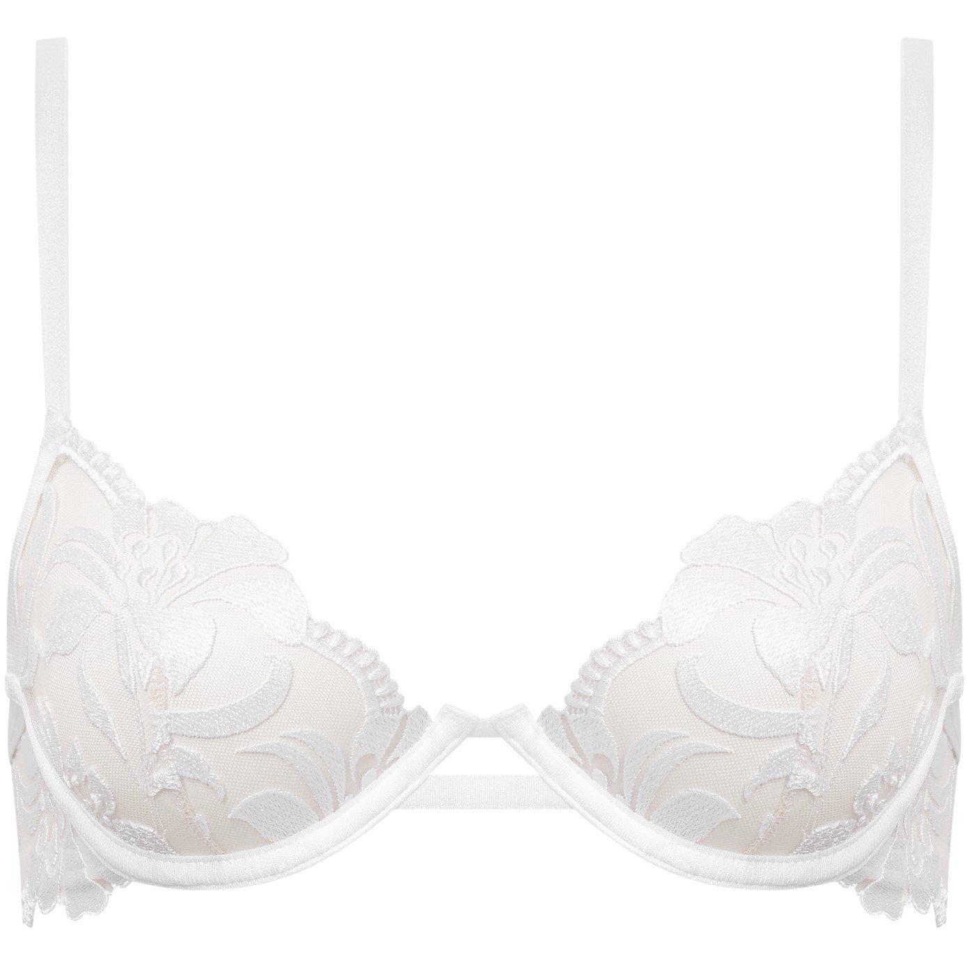 A fresh update to an already popular style, the Leonora Wired Bra is presented in hot coral— a new colour for the season and features delicate floral embroidery and sheer details. This exquisitely designed piece is finished with underwiring and adjustable straps and back to provide ultimate support. Complete the set with the matching briefs and thong.