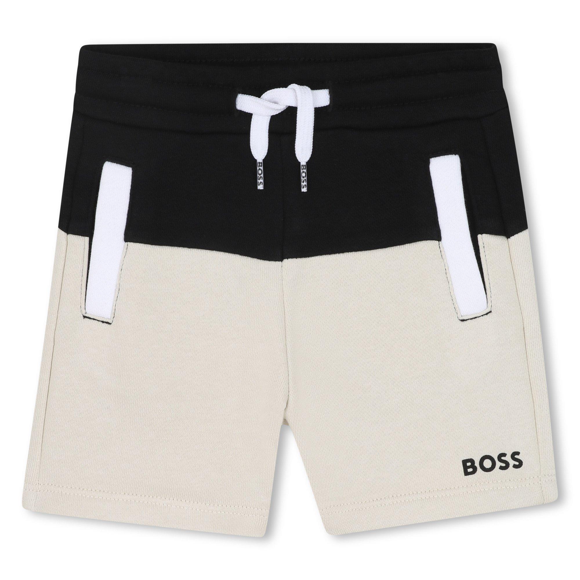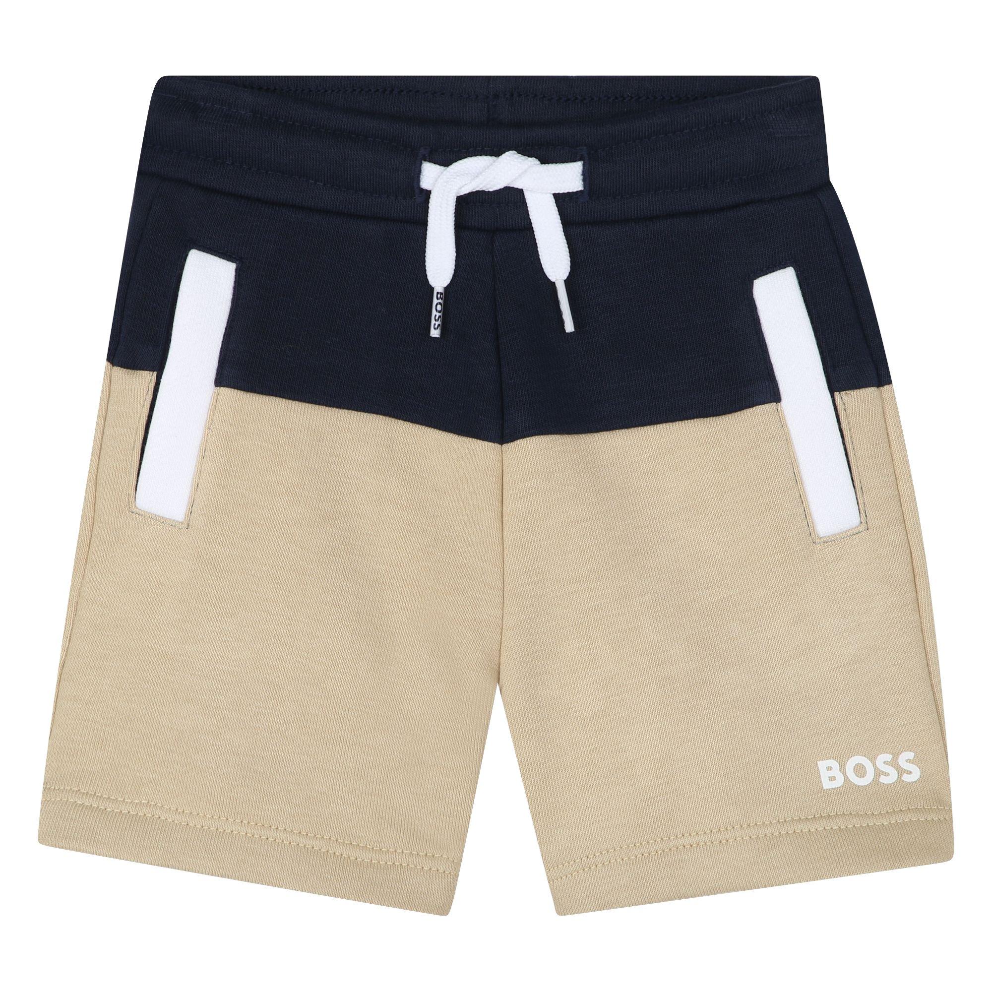 The BOSS Colour Block Fleece Jogger Shorts feature a clean block panel design. The fleece base offers structure without excess weight.