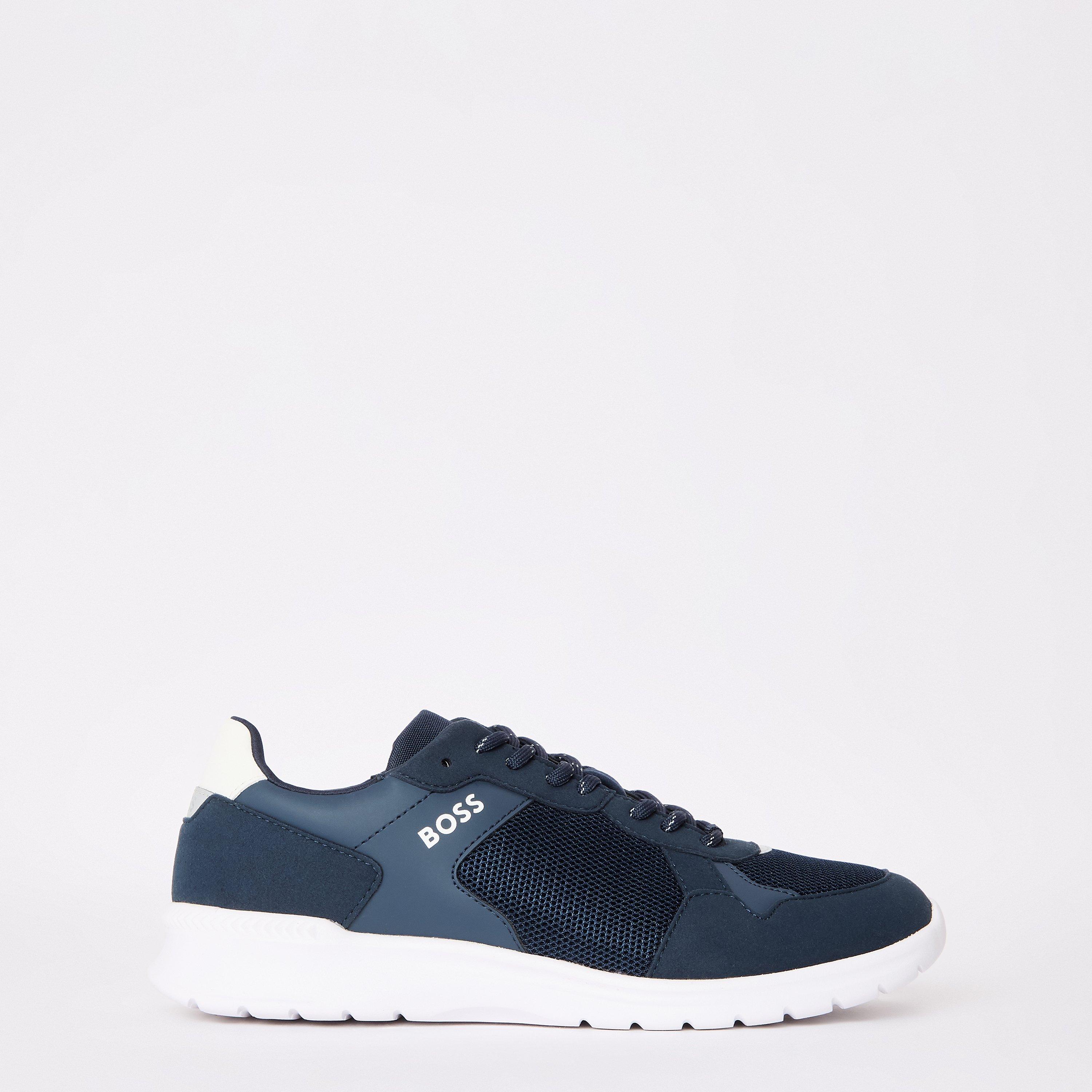 The BOSS Kids' Enlight Low-Top Trainers feature contemporary athletic style with a streamlined profile. Clean lines meet practical design for active kids.